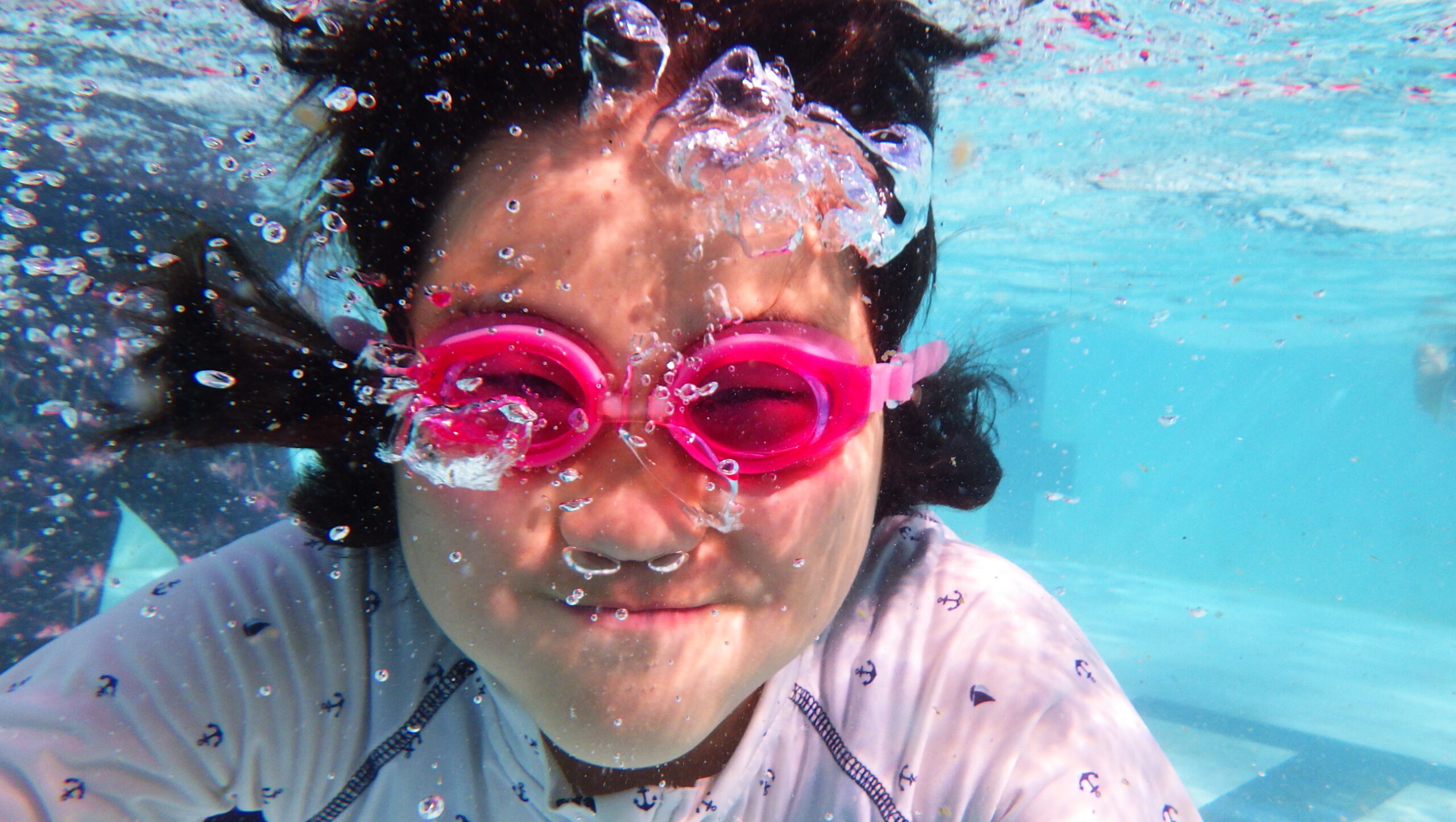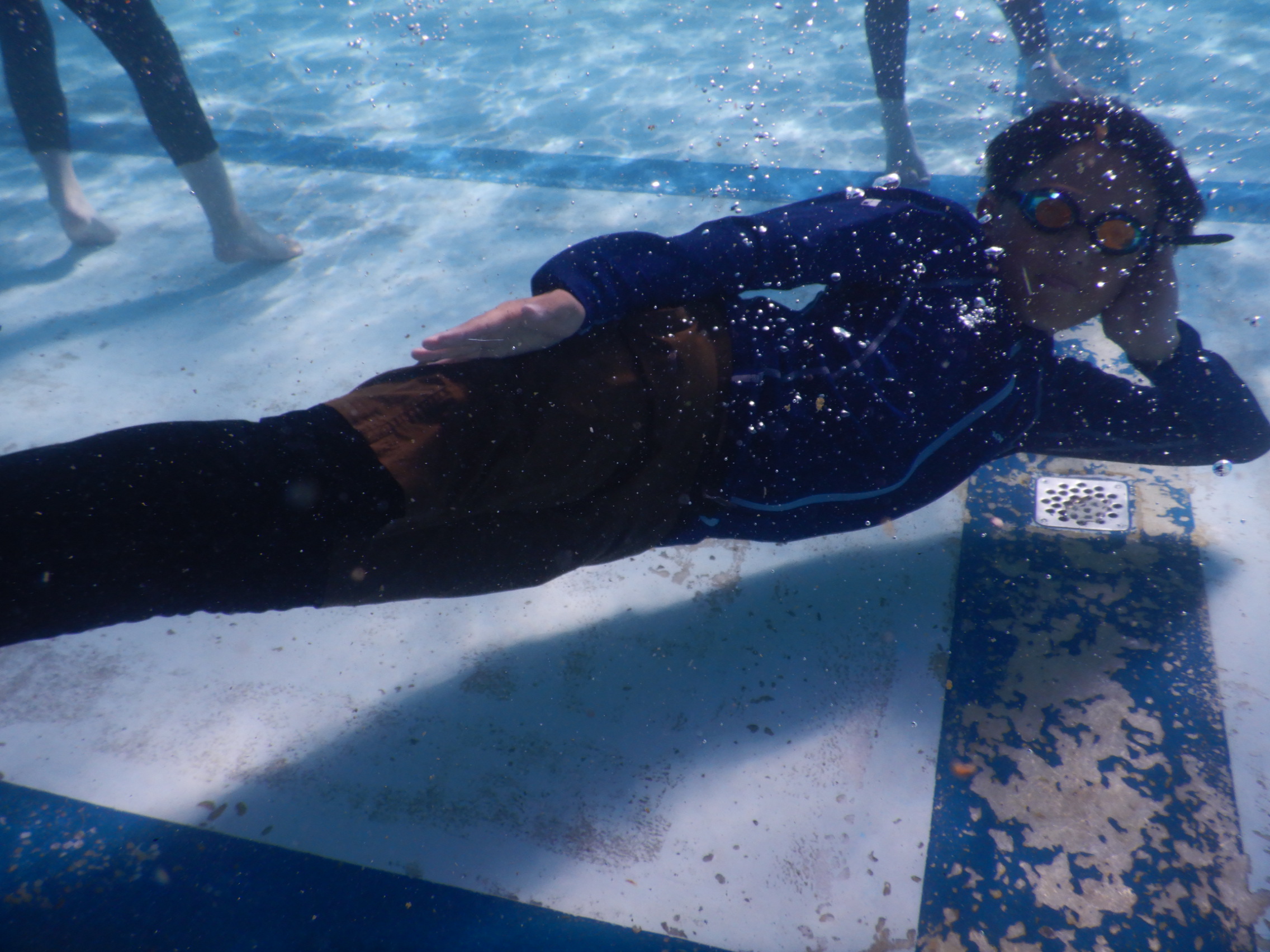 水中では息を止めて面白いポーズをとったり、友達と競争しながら楽しそうに泳いでいました!