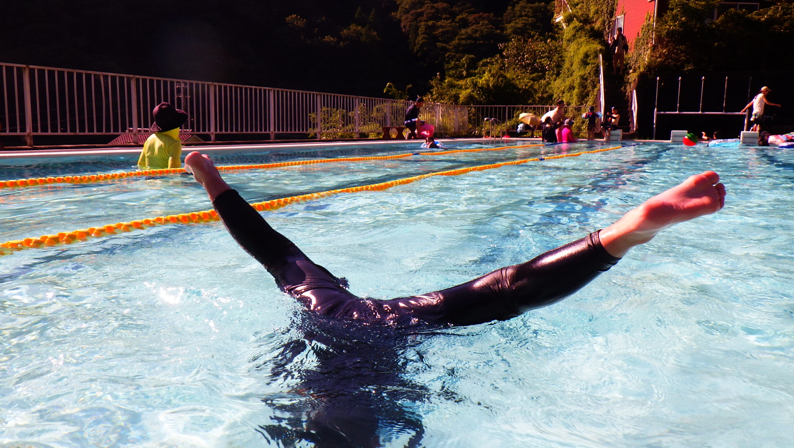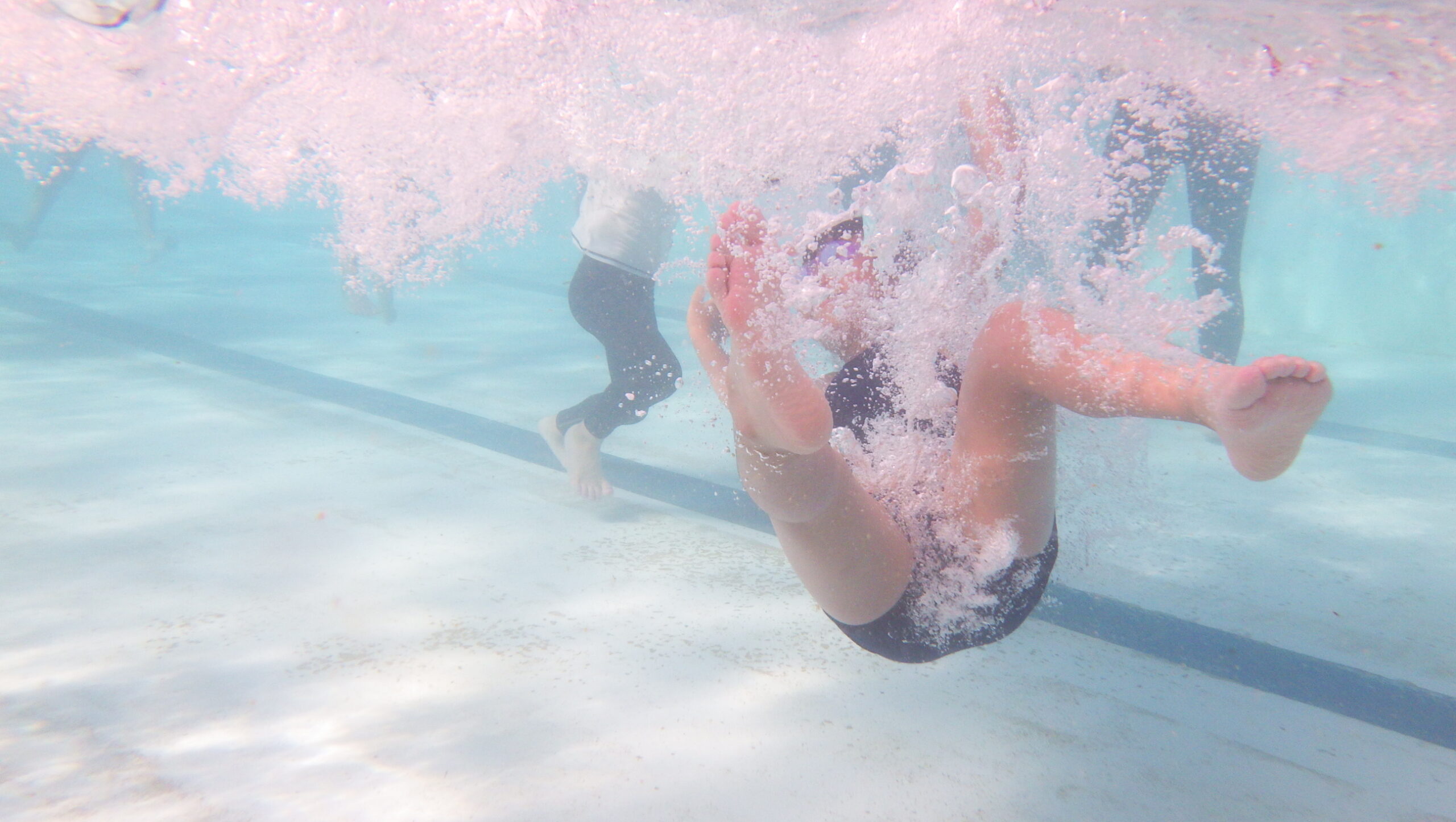 川や海と違ってプールではライフジャケットを着用していないので、潜りを含む遊びも生まれます。