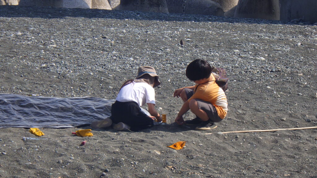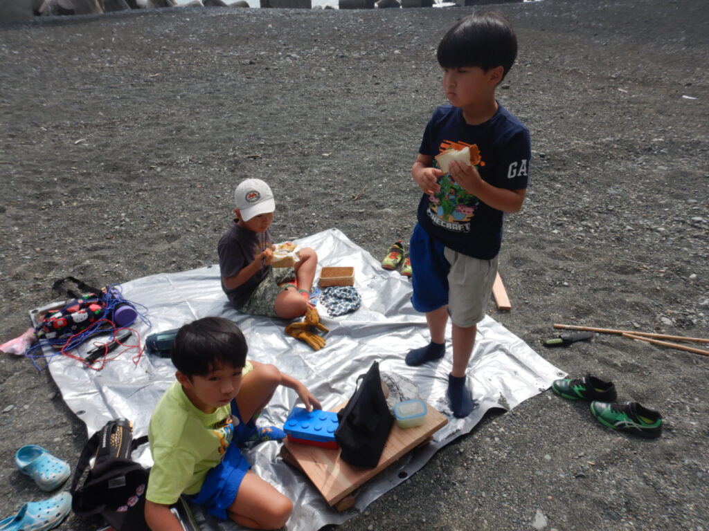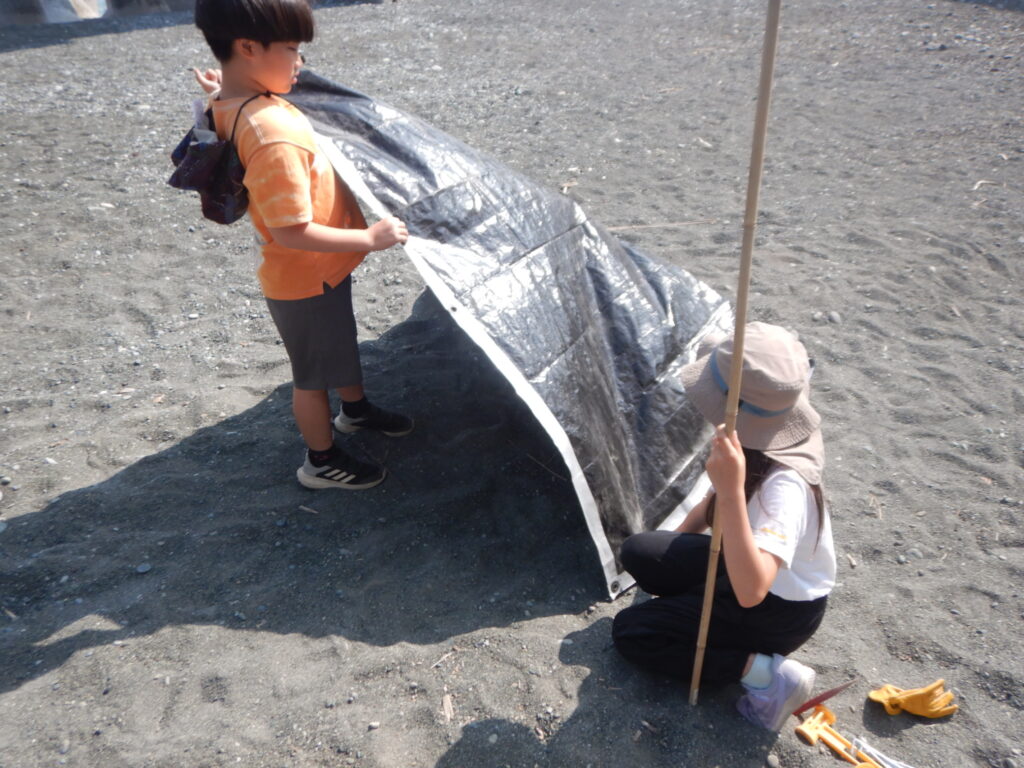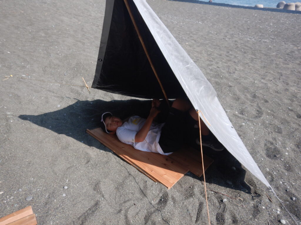 他の子たちも試行錯誤しながらタープを張り、日影ができたらそこでゆっくりするのでした。