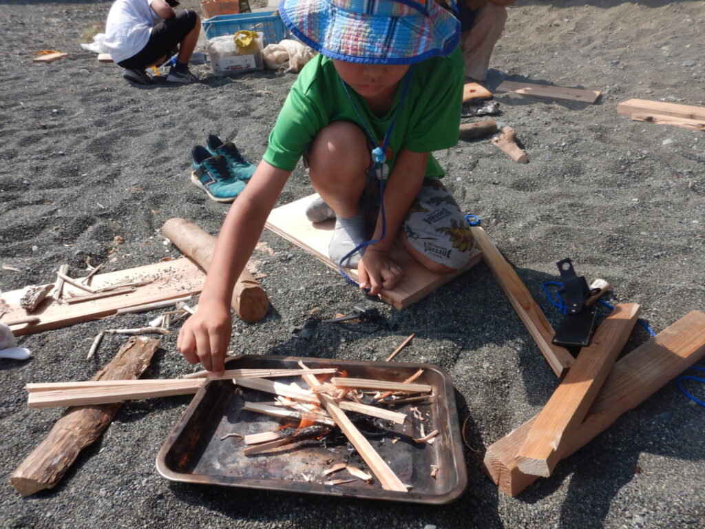 この日も焚火から始める子がほとんどでした。