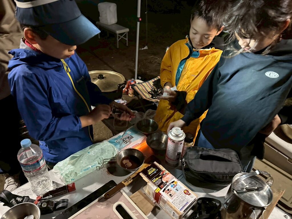 子ども達にどうするか決めていいよと伝えると、「先に遊ぶ?それともご飯作る?」と夜の行程を子ども達で話し合い始めました。