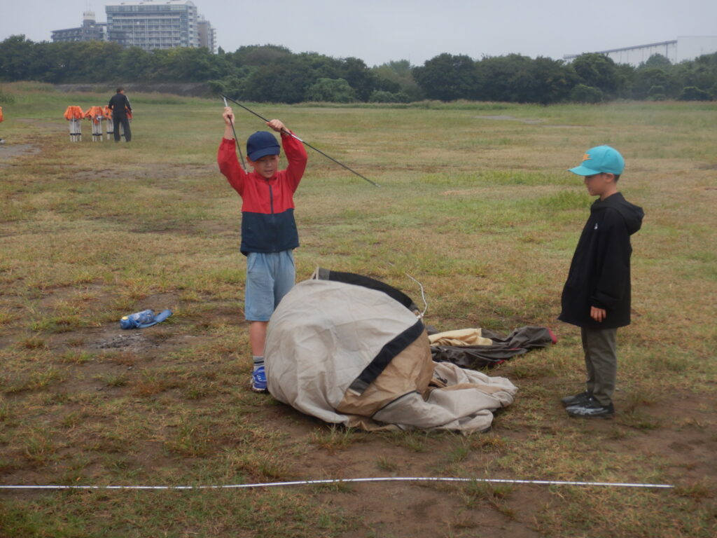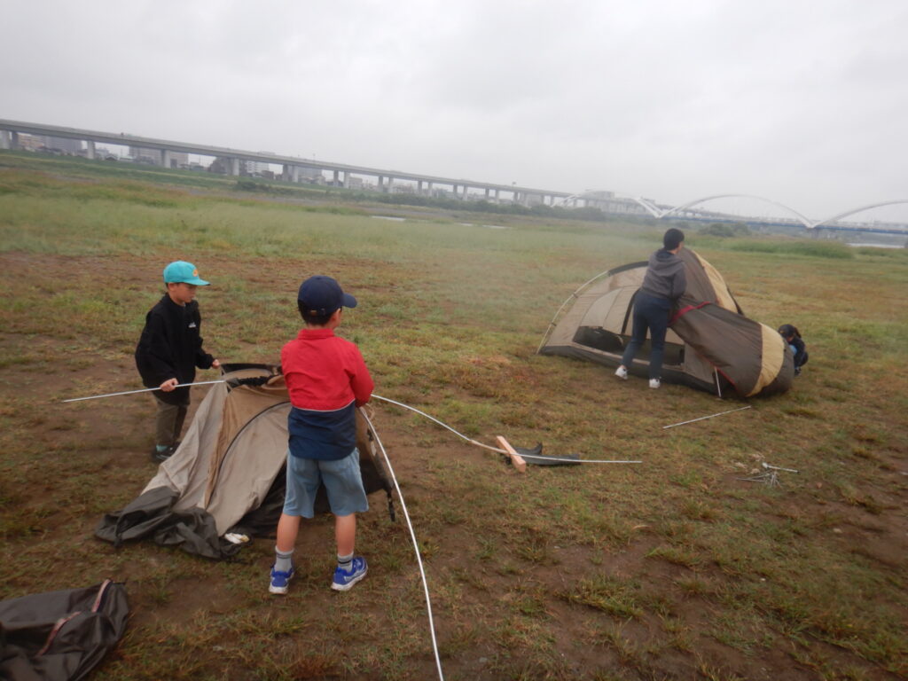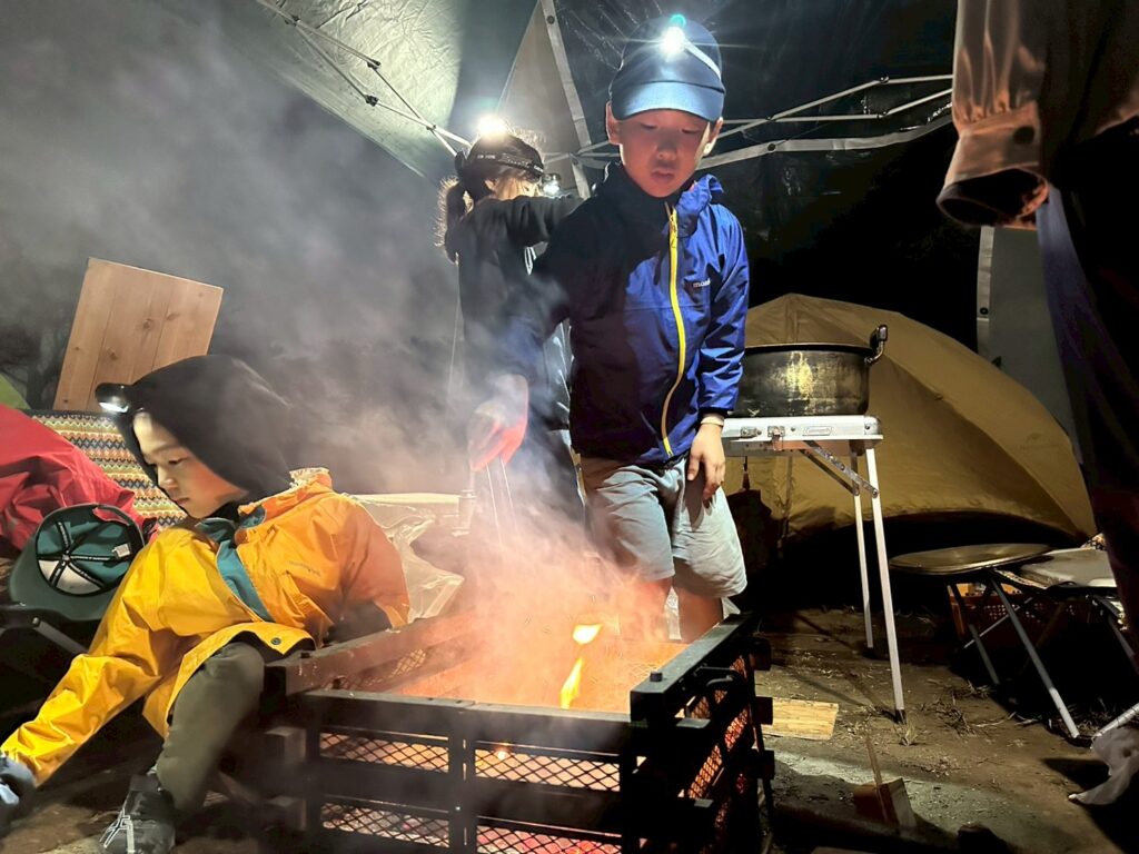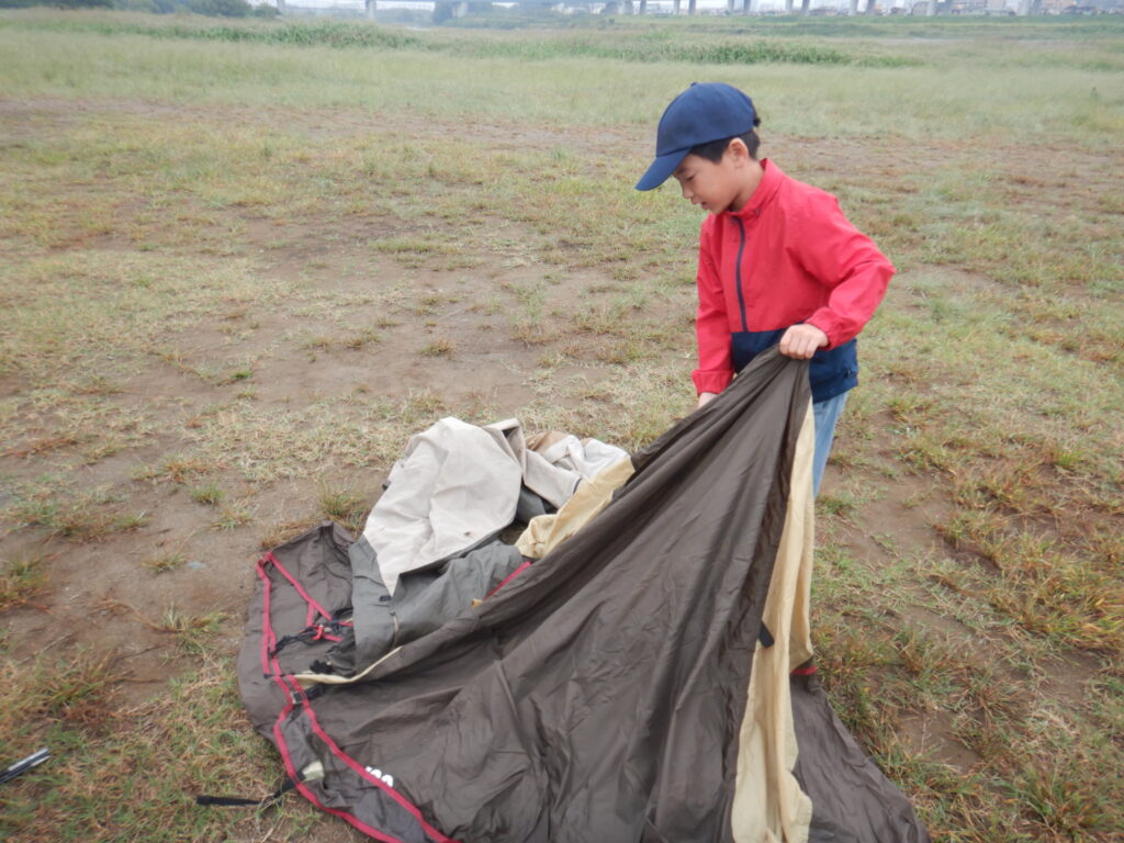 たっぷり遊んで疲れた子ども達は、自分たちで準備したテントに入って就寝準備。