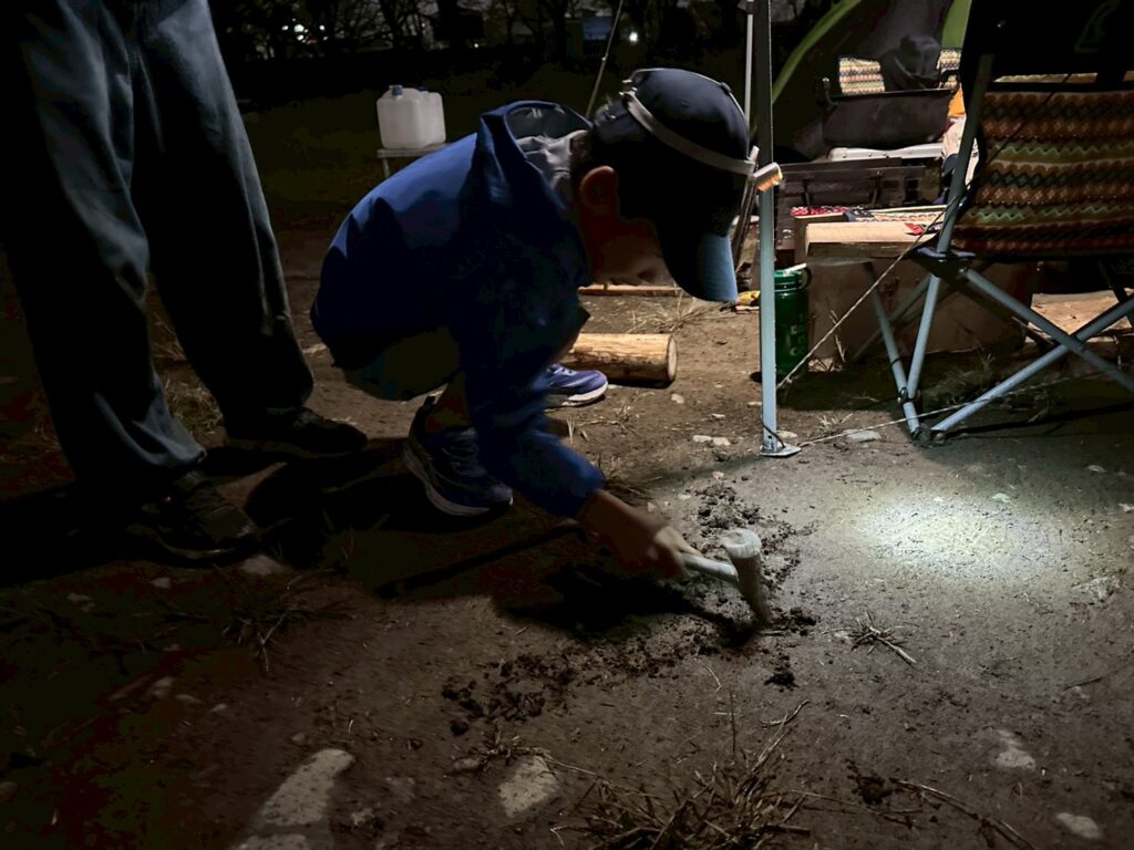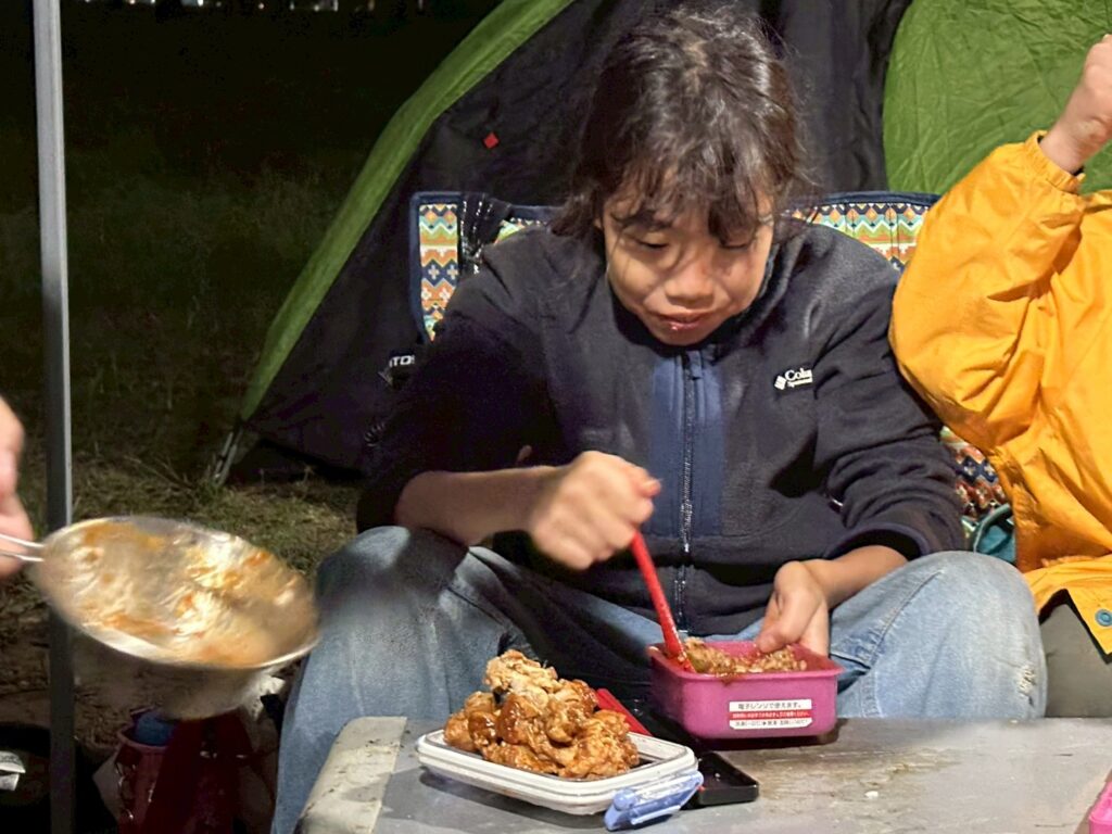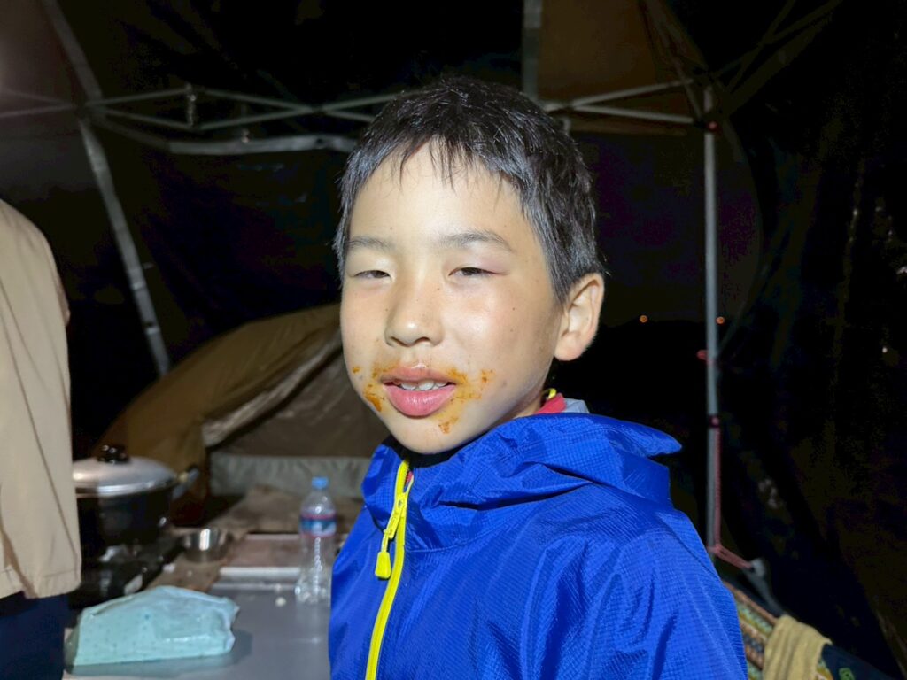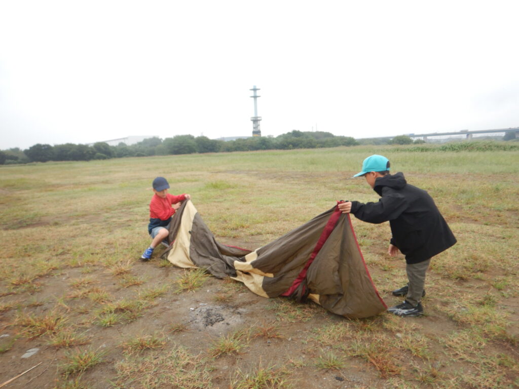 たっぷり遊んで疲れた子ども達は、自分たちで準備したテントに入って就寝準備。