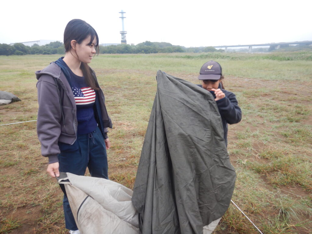 同じモデルのテントを使っているので、お互いのできている部分を見ながら進めている様子でした。