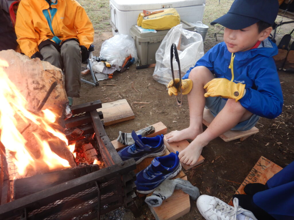 しばらく焚火の周りでゆったりしていた子ども達でしたが、いつまでも座っていると退屈になってきます。