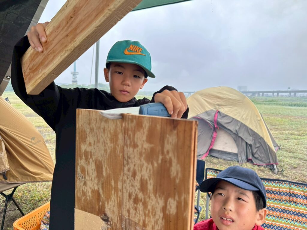 雨が降っていたこともあり、子ども達はタープの下でゆったりした時間を過ごしました。