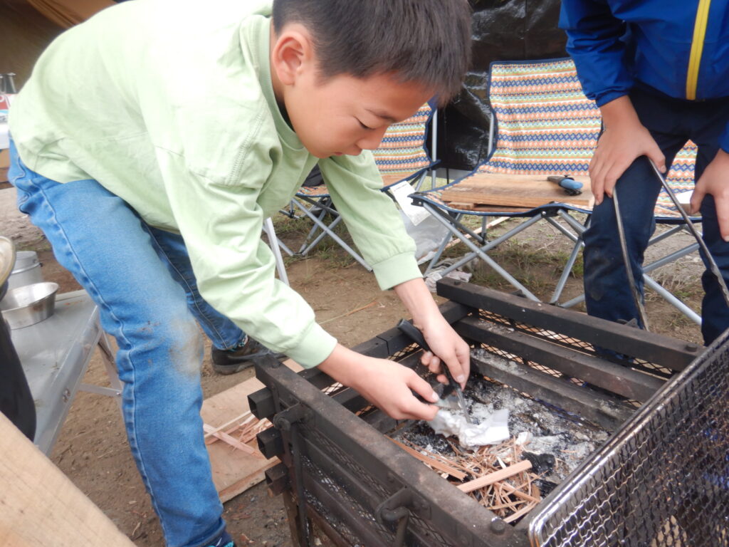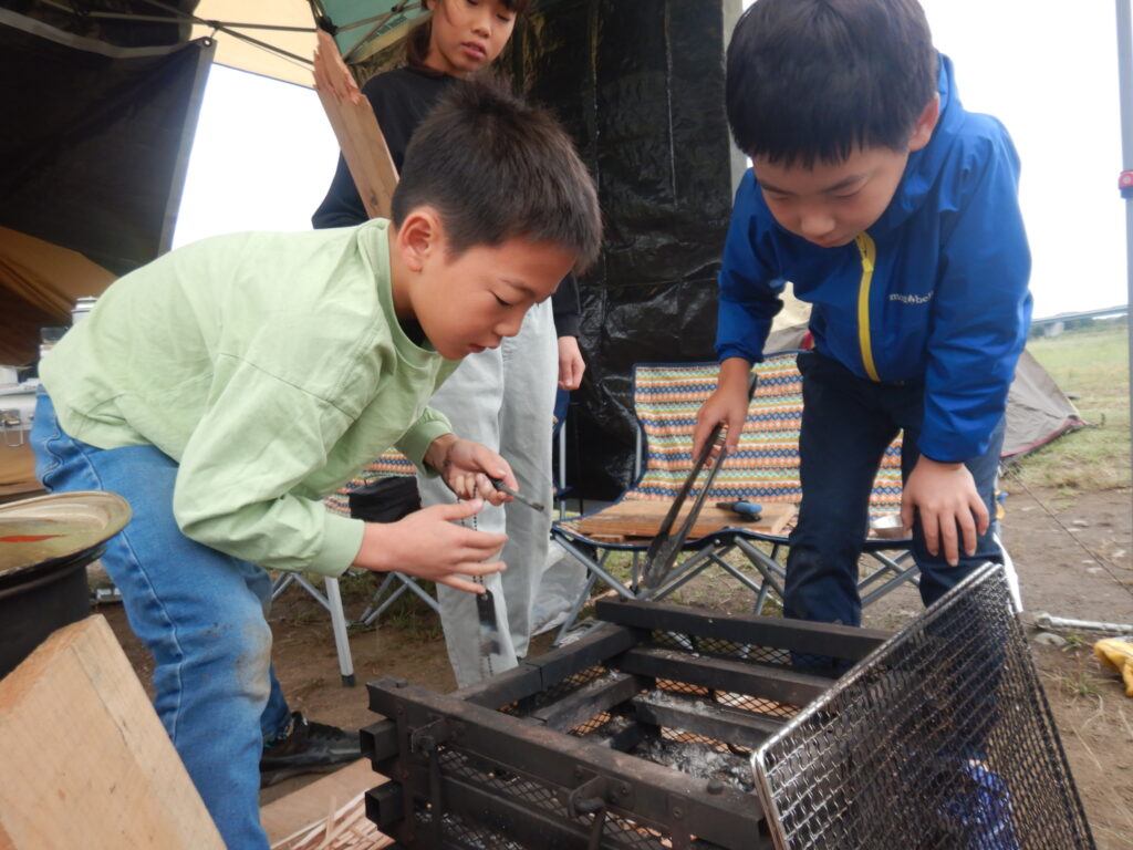 最終的にはスタッフが火おこしの最初の部分だけを手伝い、その後の火を安定させる部分から子ども達にお任せしました!