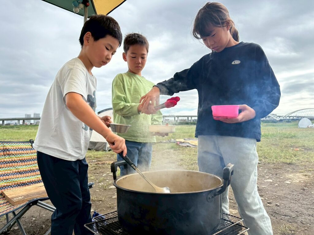 今回のキャンプでは子ども達はたくさんの挑戦をし、自分たちの楽しい遊びにとことん夢中になり、寒く真っ暗な夜に火を囲んで話をし、みんなで作ったご飯をみんなで食べました。