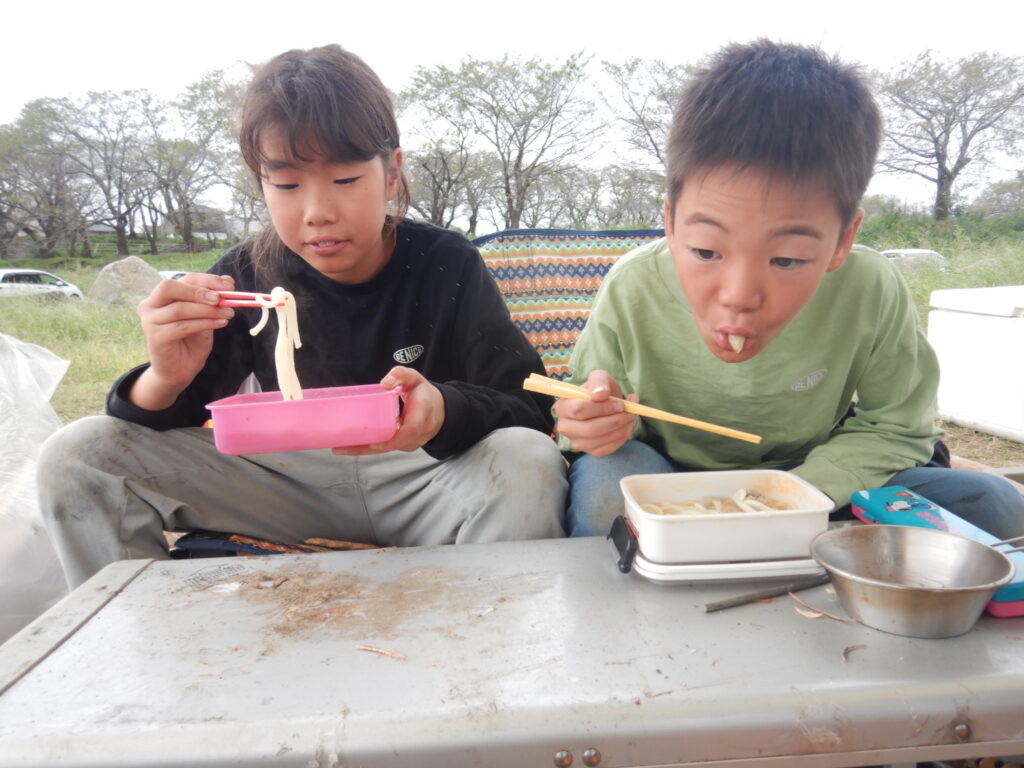 「うん!うまい!!」と麺を口の中にかき込んでいく子ども達。