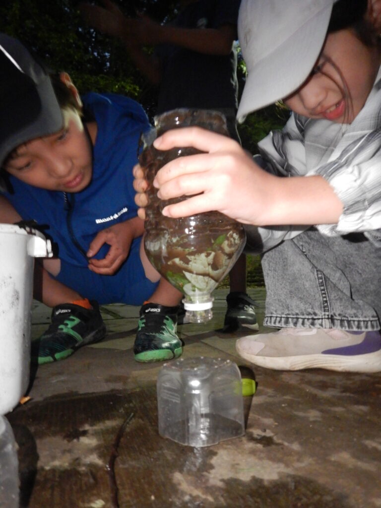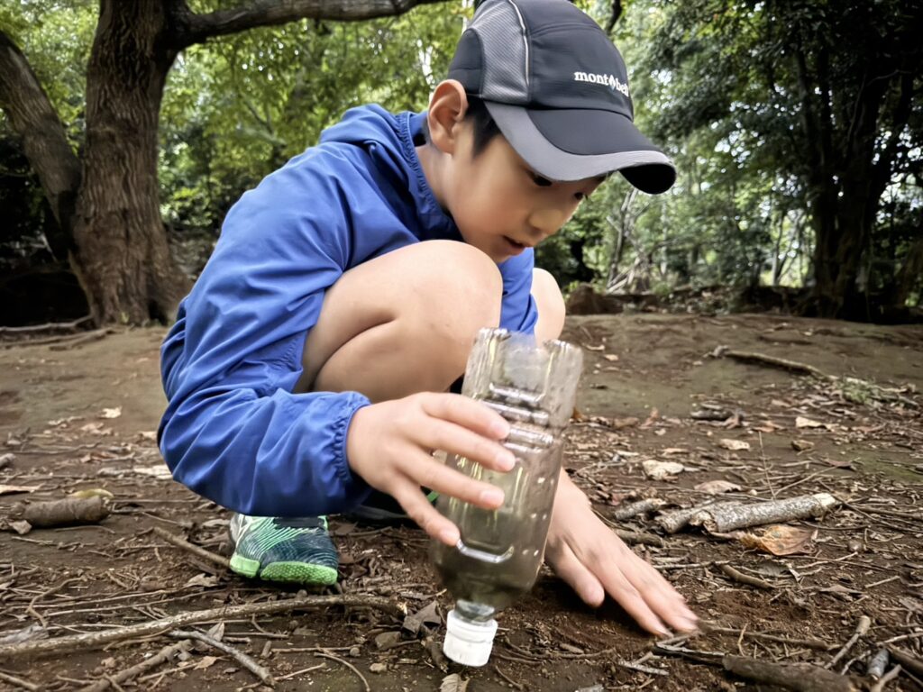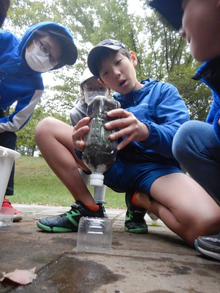 泥水を綺麗にするという少し面倒な作業の中で、子ども達は「試してみる面白さ」を最大限感じているようでした。