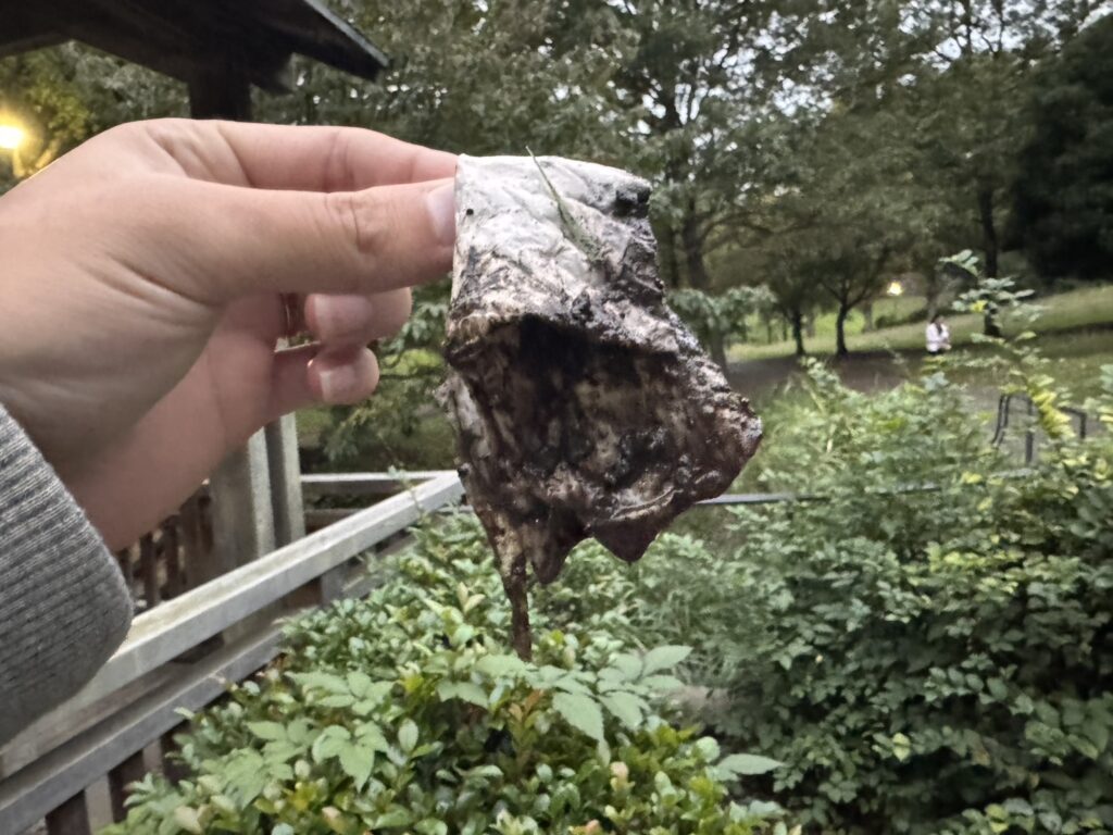 「うぁ~汚い!」その直後飲み口から、泥水がドバドバと出てきました(笑)