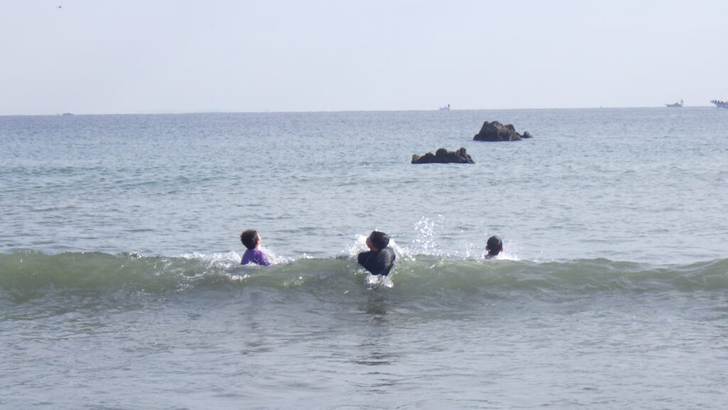 持ち物に水着やゴーグルなどは入っていませんが、年間で参加している子ども達は「海の近くでの活動だったら入れるかも」と前日の夜から期待をしていたようです。