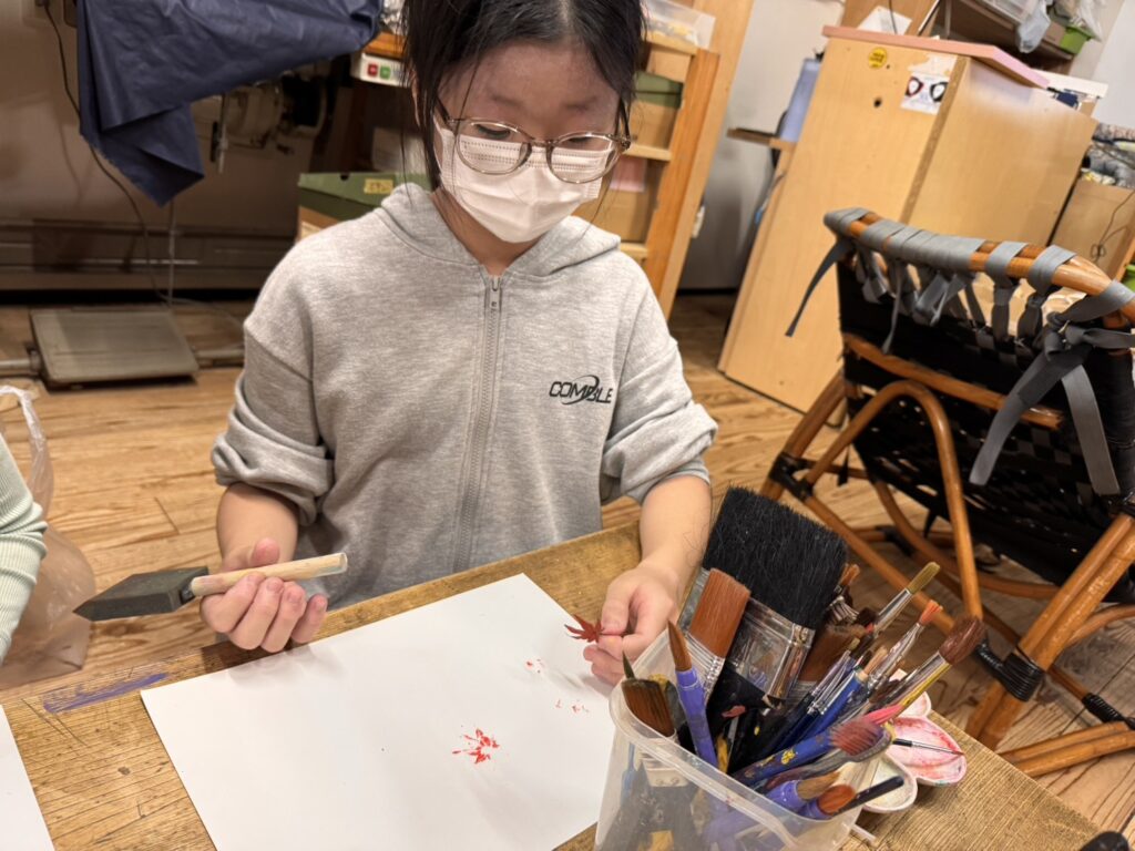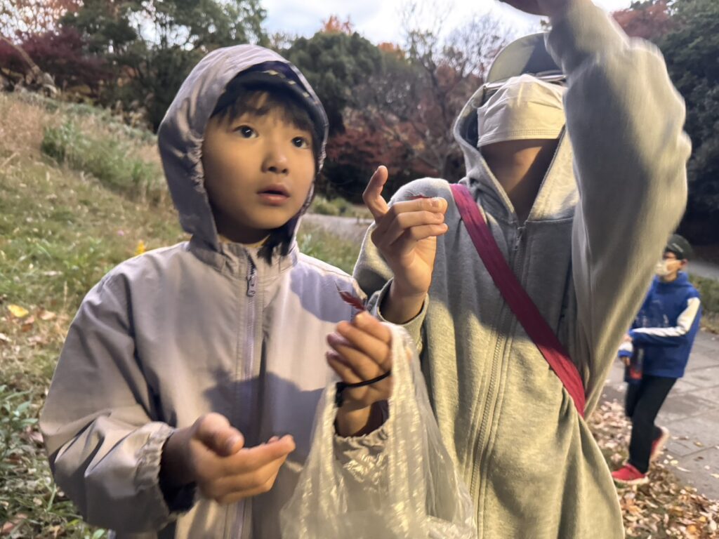「せっかくだから落ちてるもみじでしおりを作りたいよね!」「それいいね!」