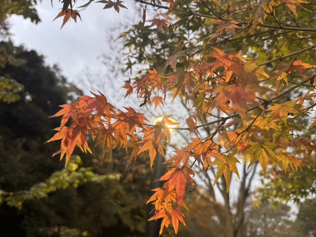 緑道は落ち葉が一面に広がり黄色・赤・茶色の落ち葉がまるで絨毯のよう。