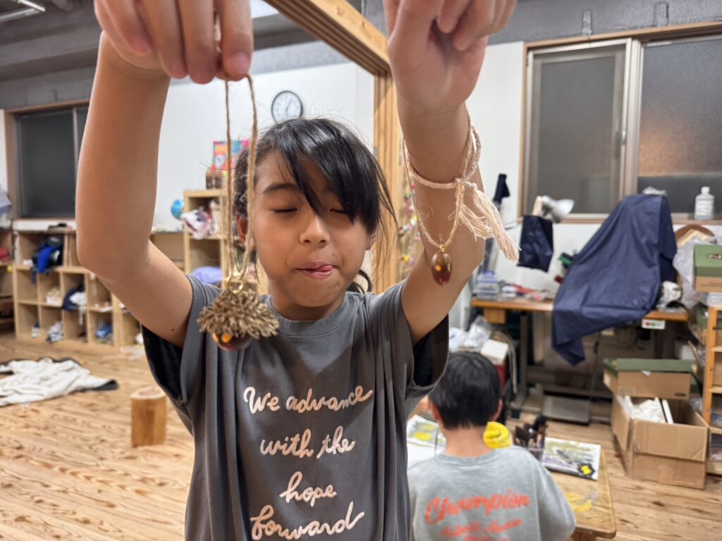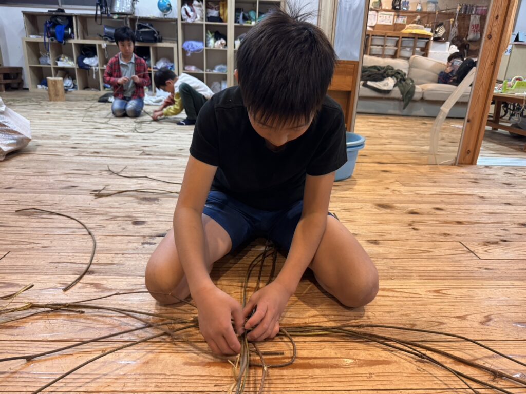さらに、クズのつるを使ったで籠の編みに挑戦している子もちらほらと。