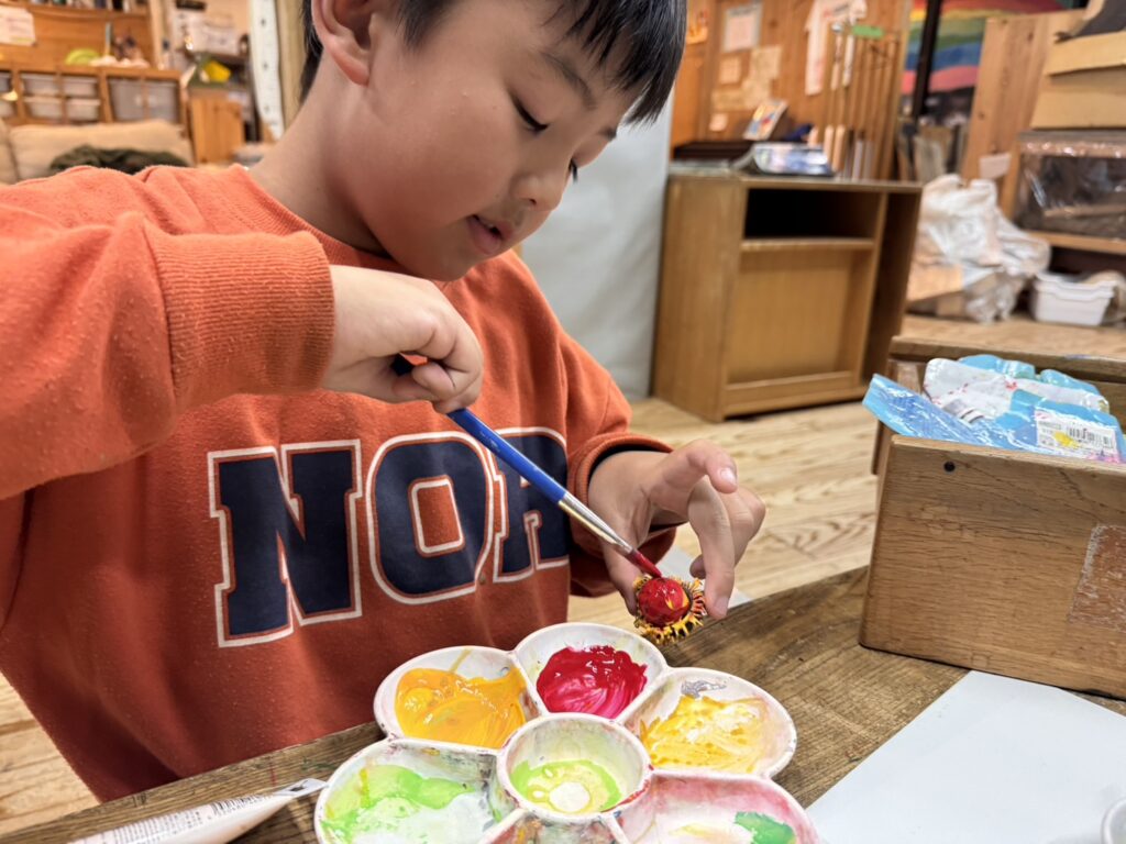 いつも遊んでいる緑道にて季節の素材を拾い、その素材でクラフトを行いましたのでその様子をご紹介します!