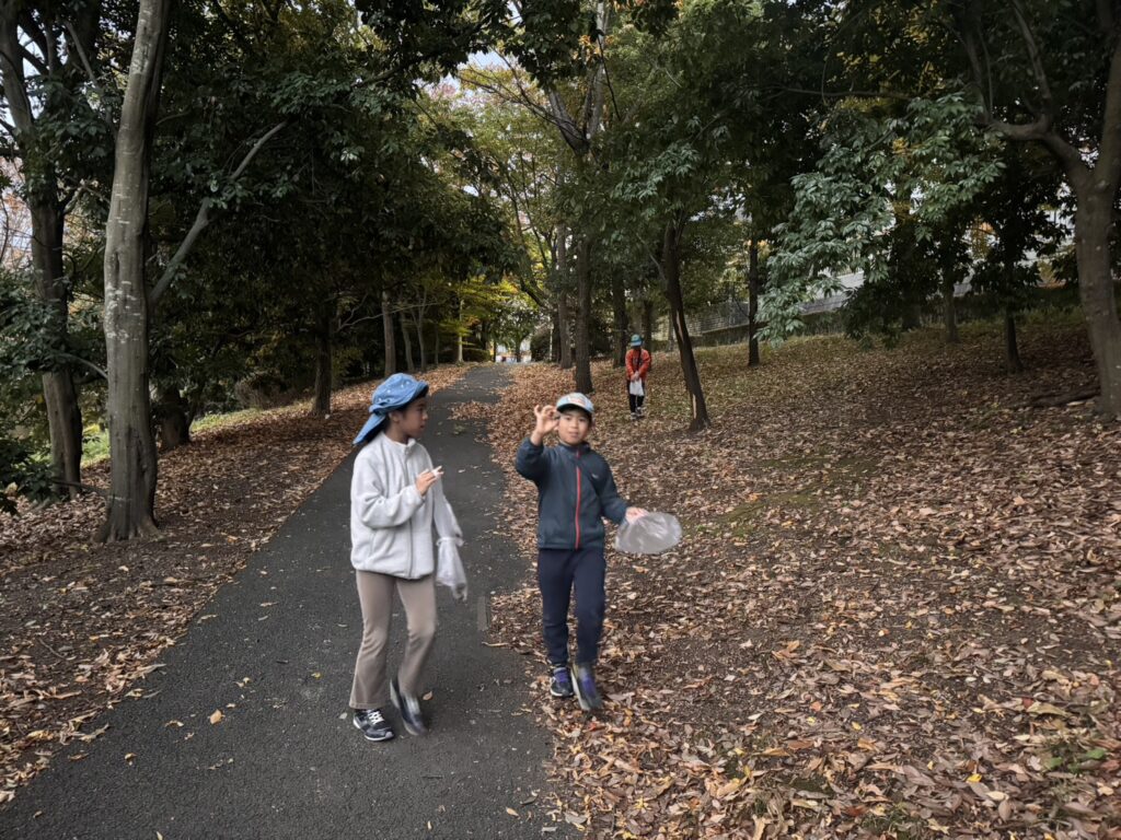 いつも遊んでいる緑道にて季節の素材を拾い、その素材でクラフトを行いましたのでその様子をご紹介します!