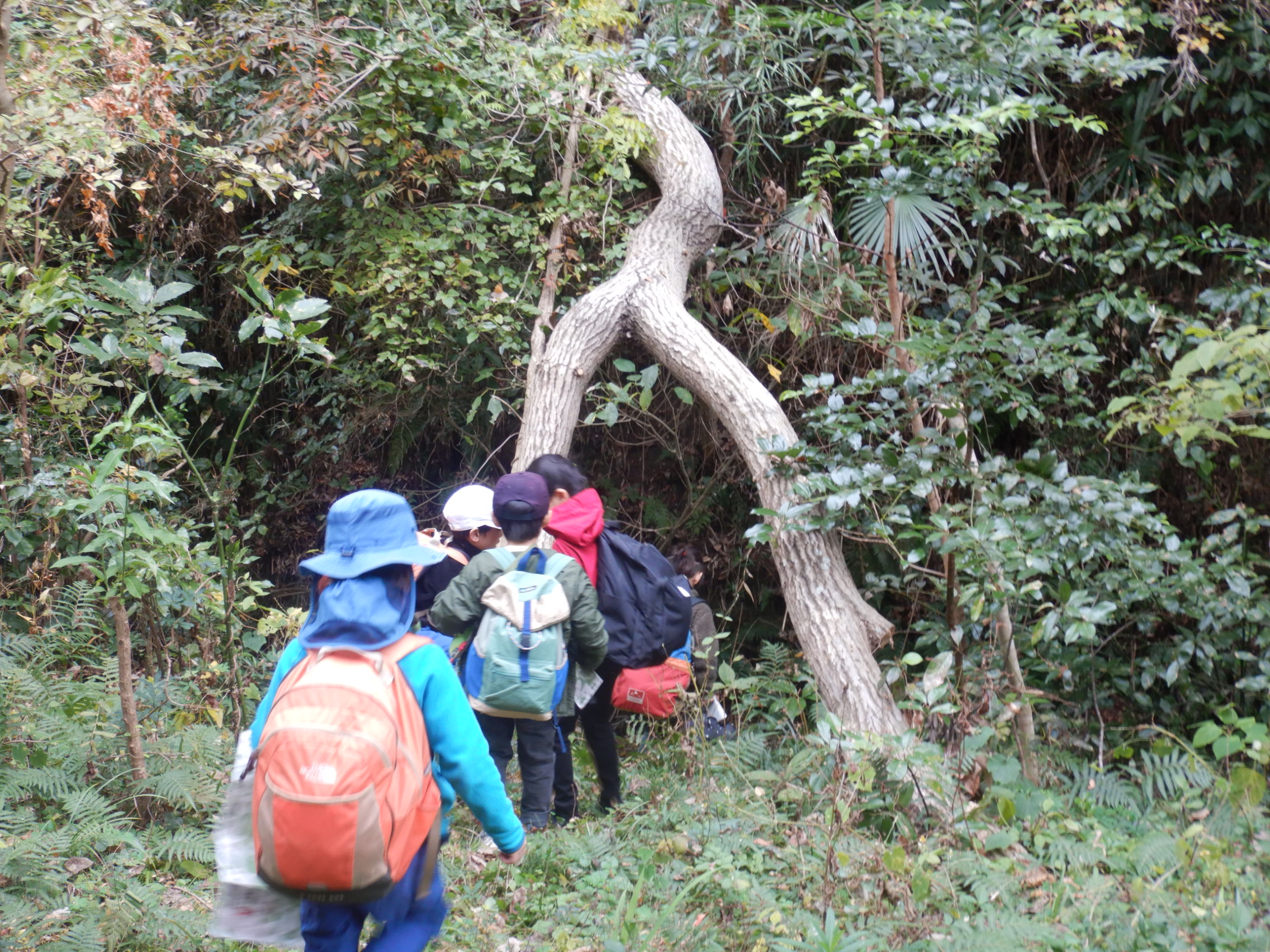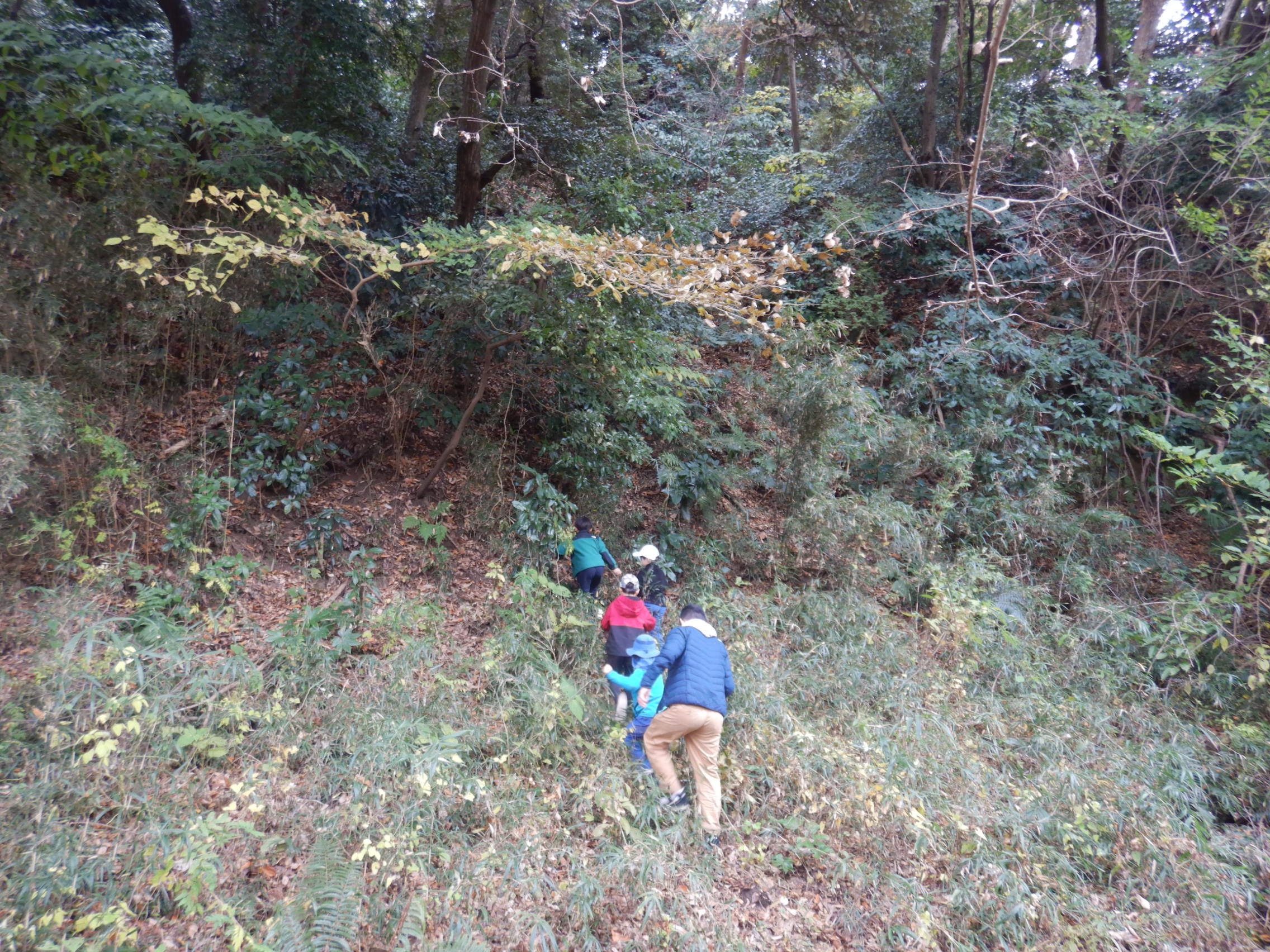 大エノキの裏にある森で斜面登りにも挑戦しました!