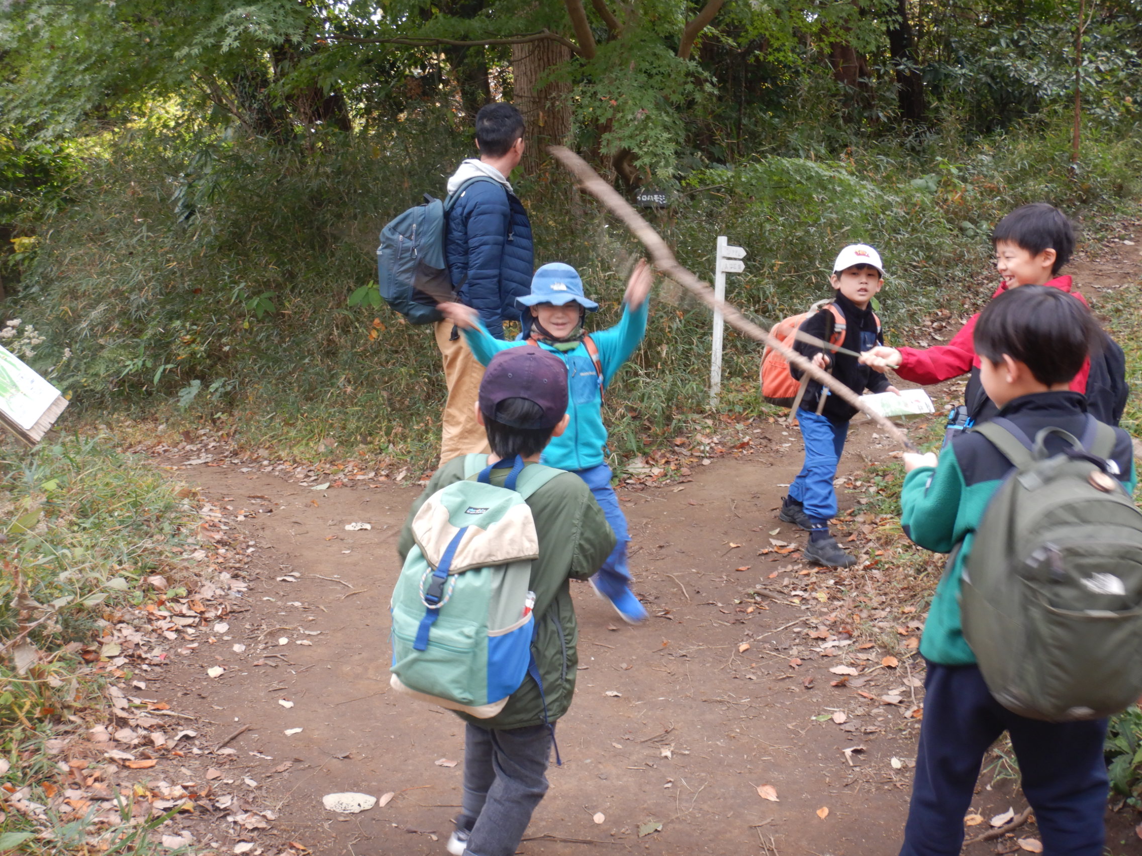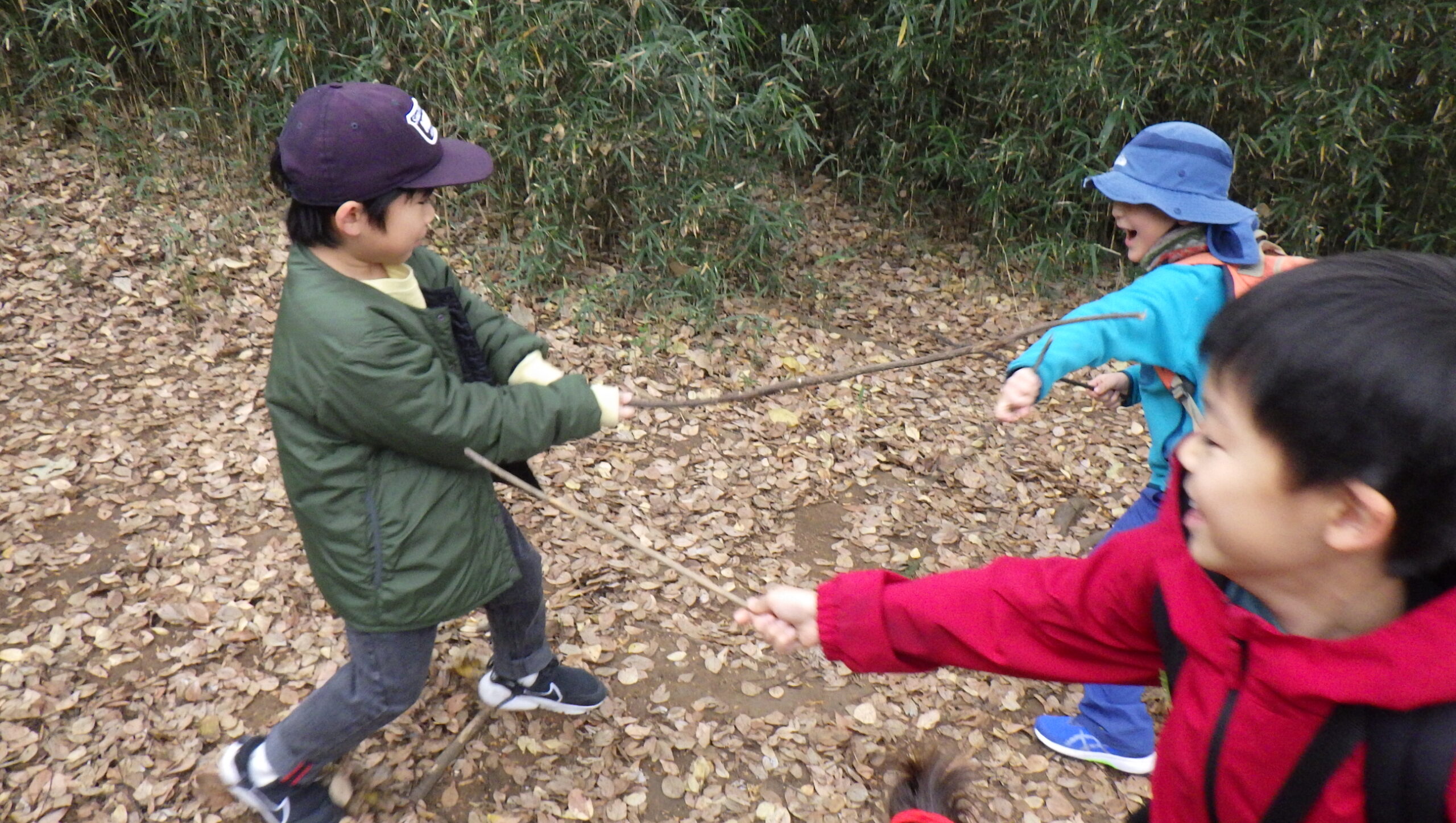 歩いている途中で見つけた枝を剣に見立て戦いごっこが始まったり