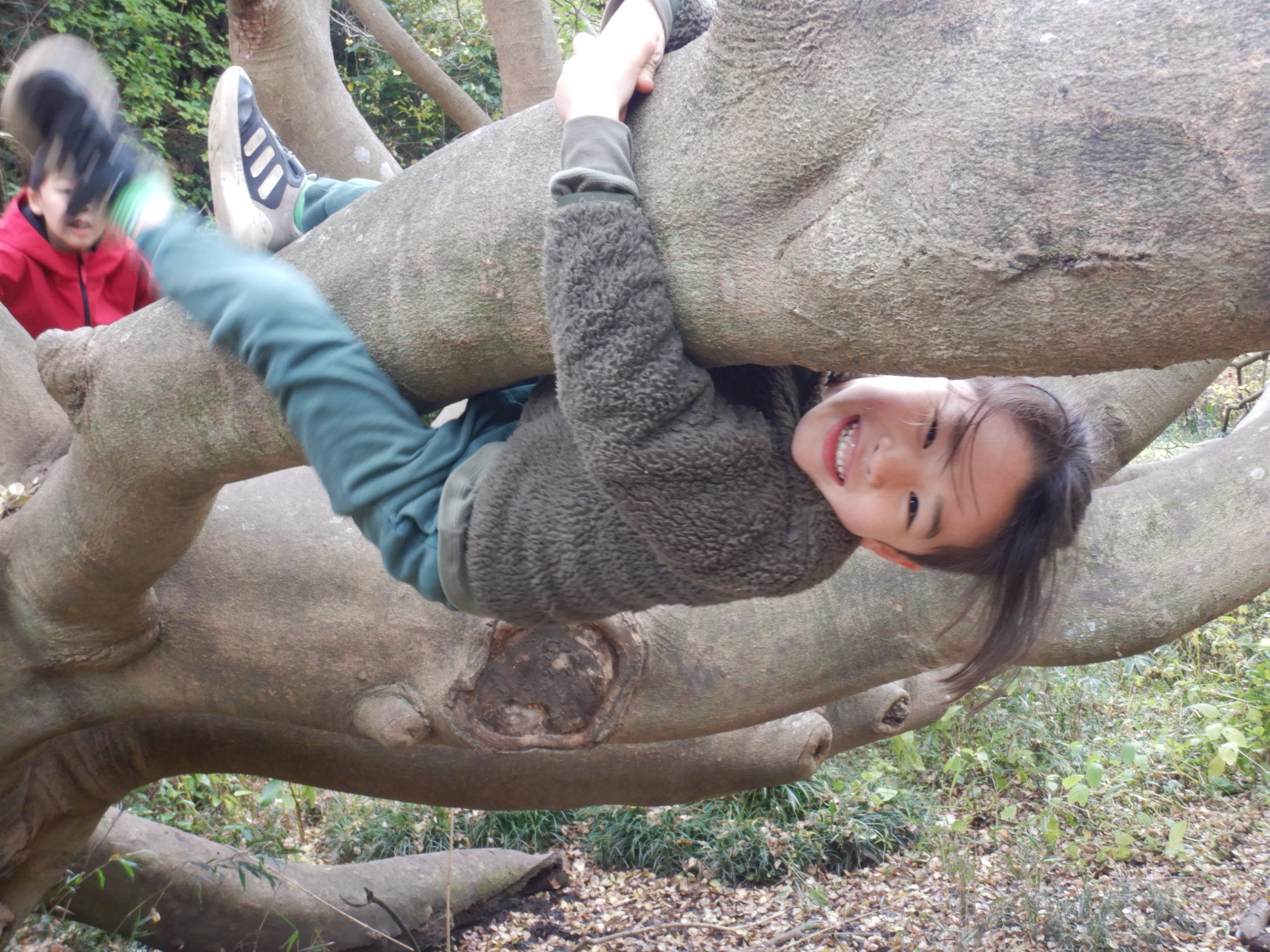 リュックも置かず一目散に木登りが始まります。