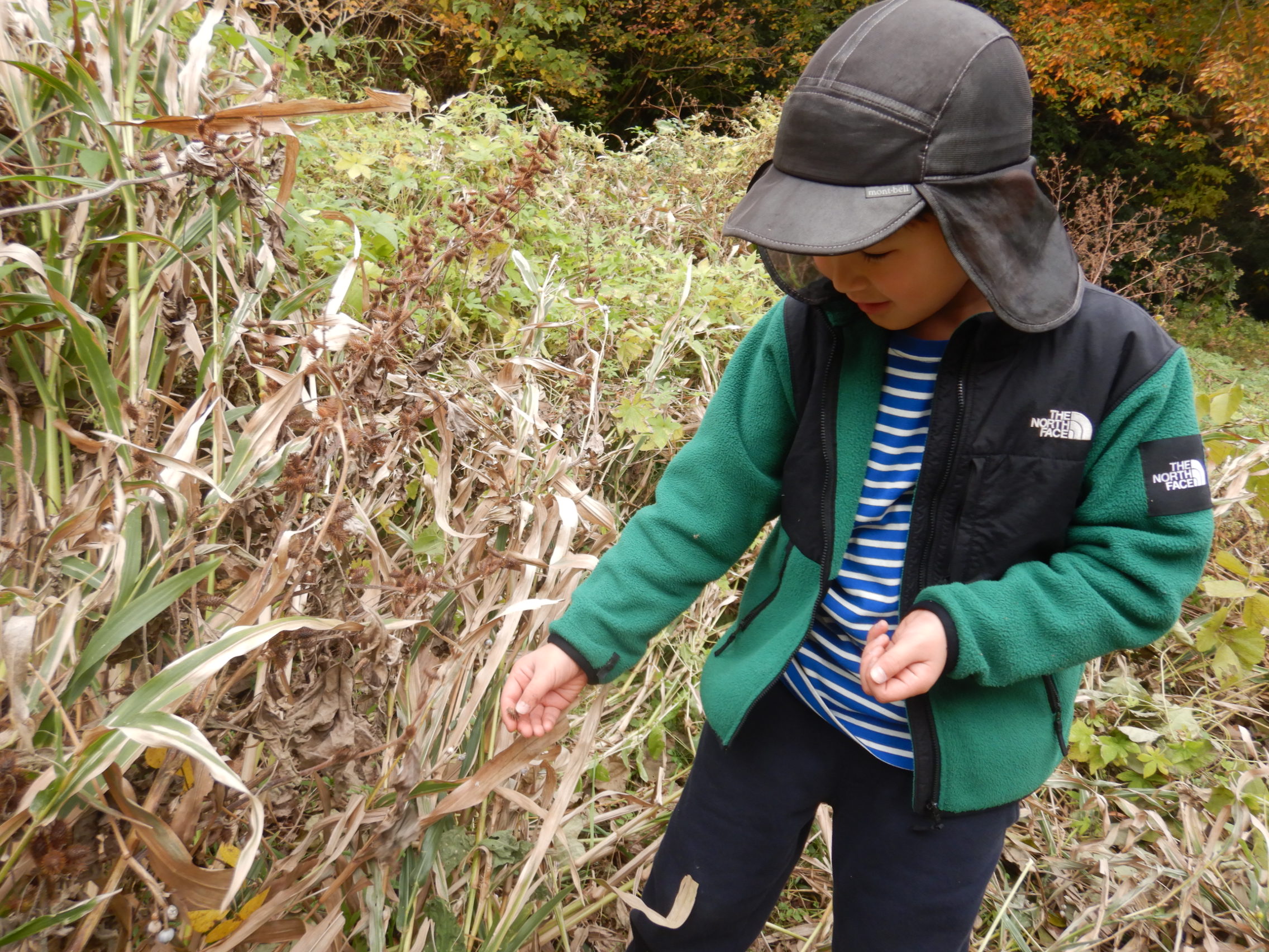 拠点の周辺を探検しオナモミ(くっつき虫)を見つけ