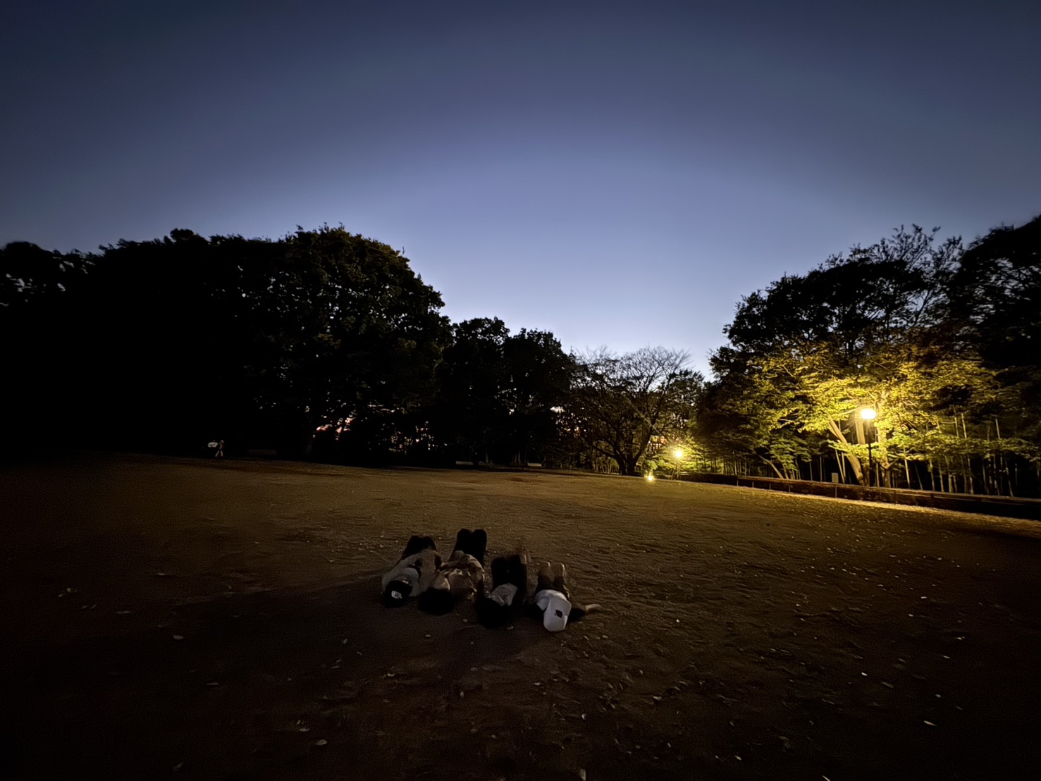他にも芝生に寝転がり、暗闇ならではの星観察も楽しむ子どもとスタッフ。