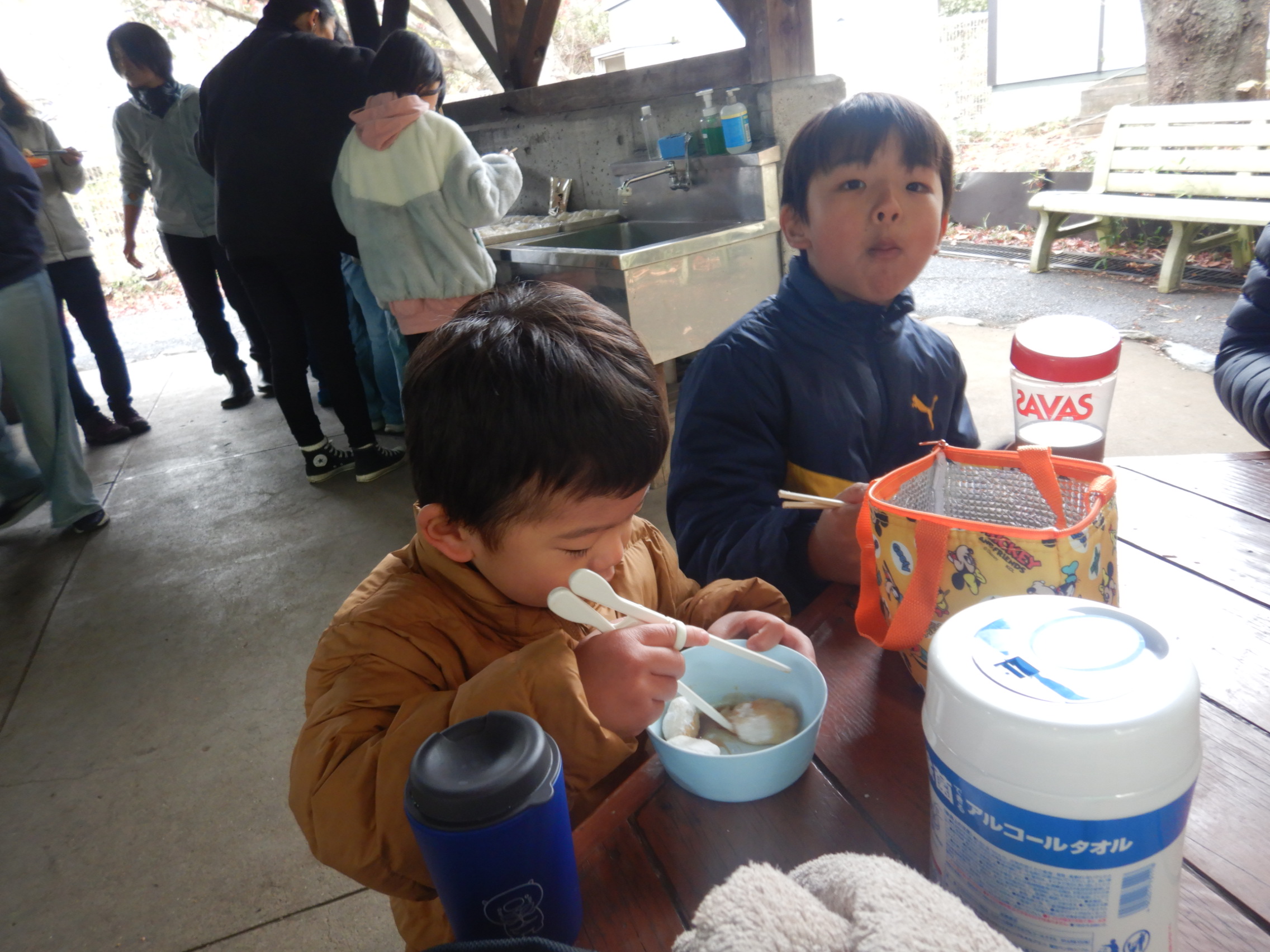 子ども達はたくさんの餅を食べ、他にも焚火で遊んだり、広場をかけ回ったりと寒さに負けずに遊ぶことができました!