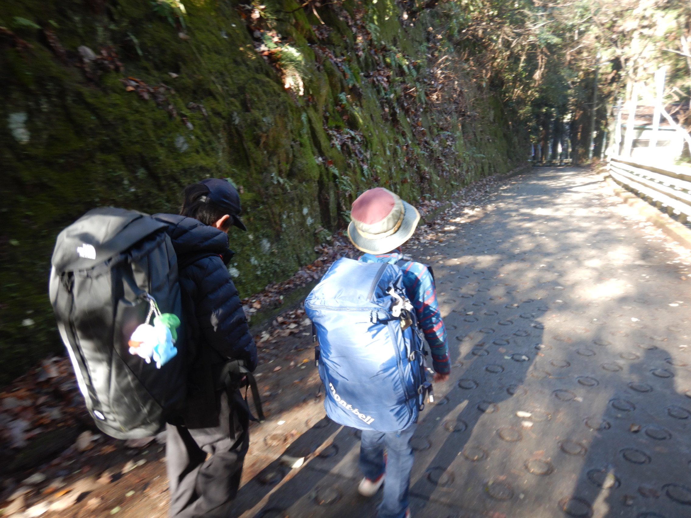 背中一面を覆うほどの大きな荷物を持ち、電車、バスを乗り継いでキャンプ場に向かう子ども達。