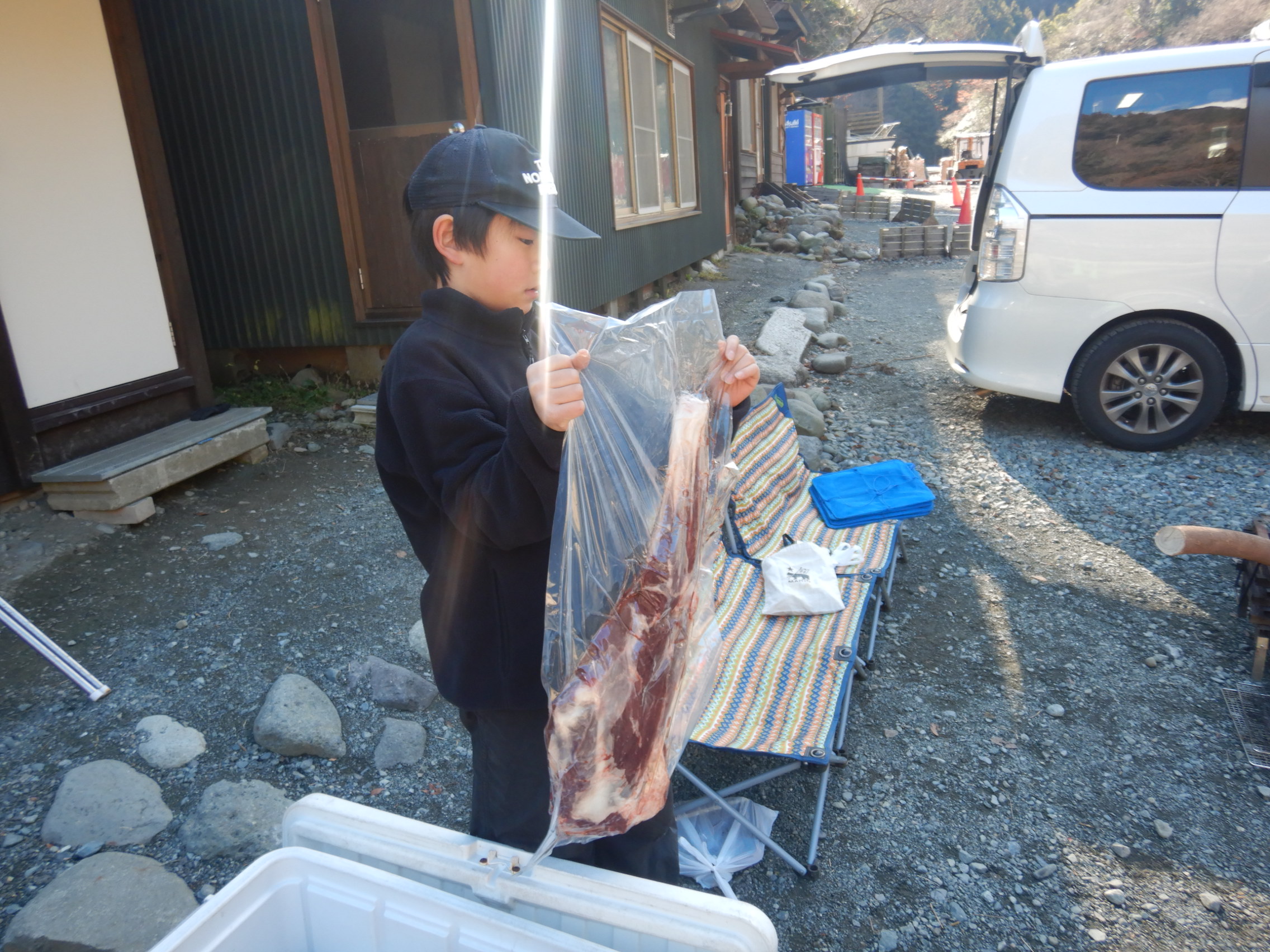 子ども達は大きな肉の塊にビックリ!