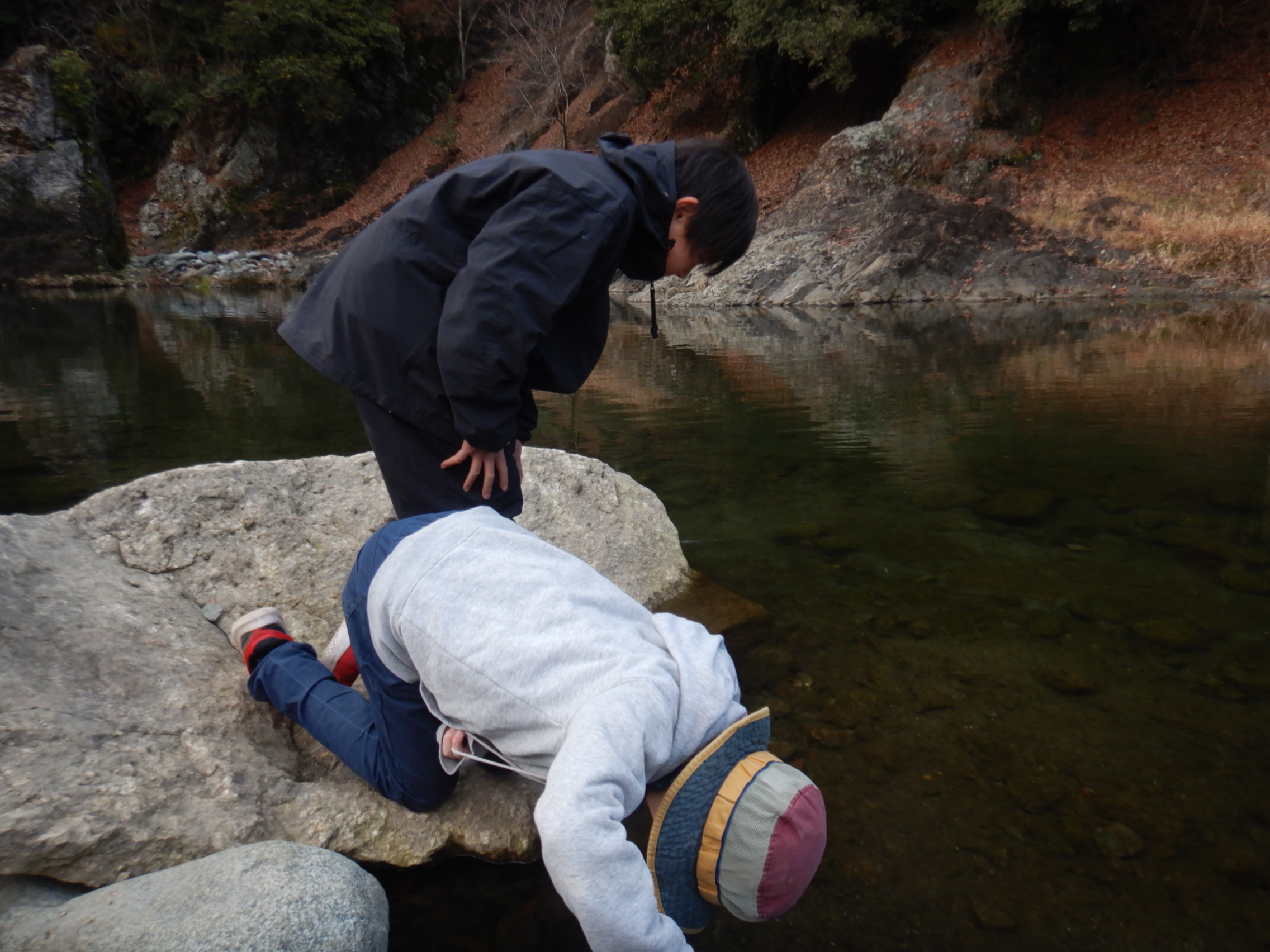 気温が下がってきたこともあり、魚の捕獲は断念しました。