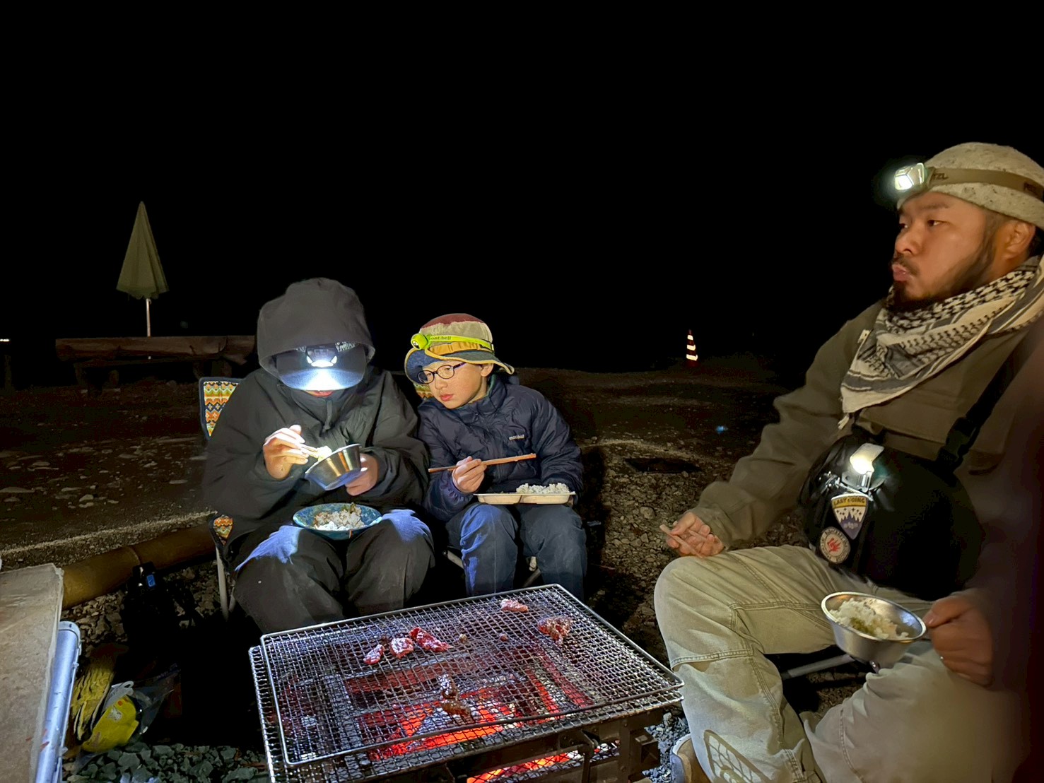 寝る前の子ども達は少しの時間だけ焚火と星空を眺め、満足してから寝袋に入りました。