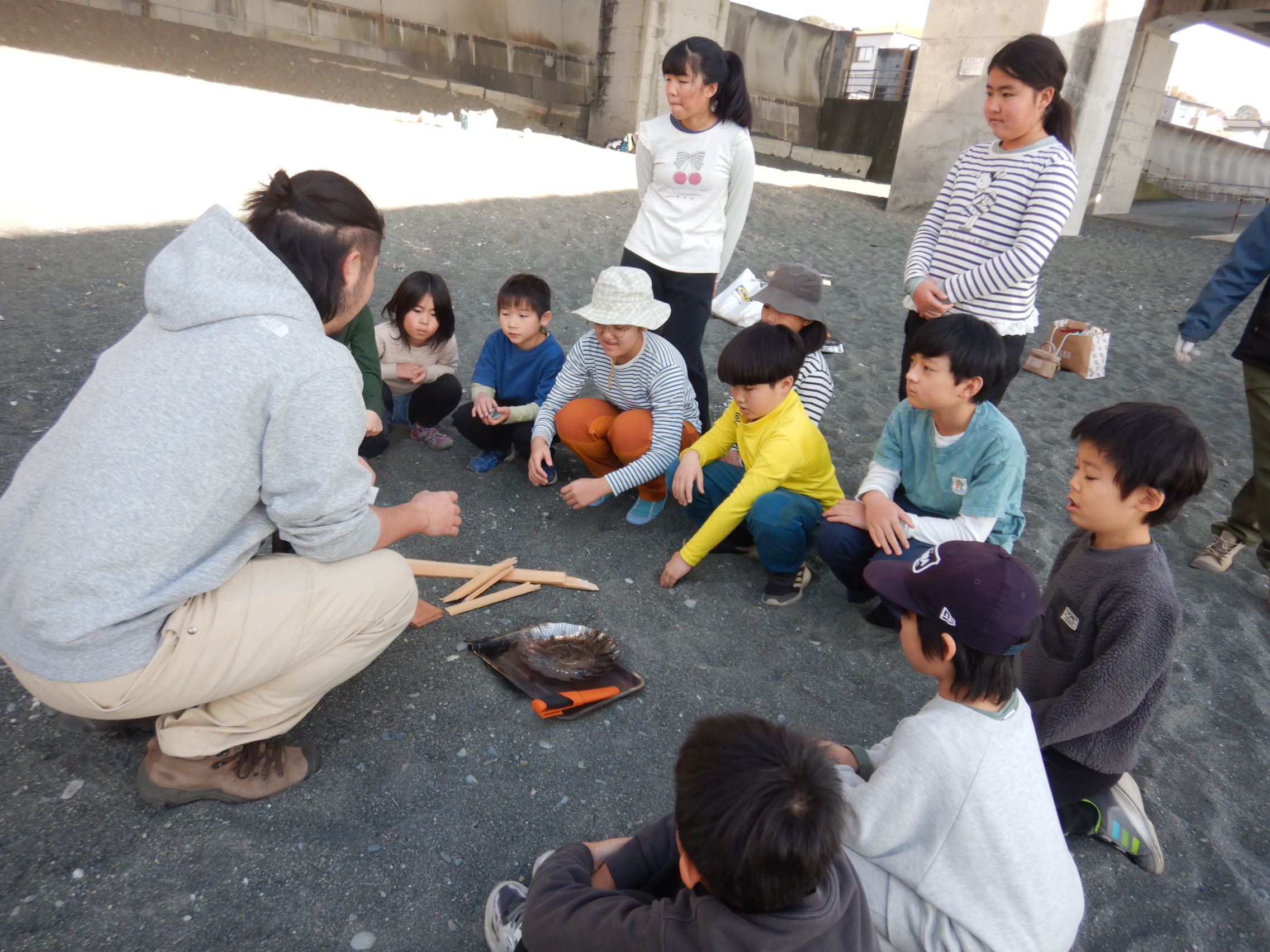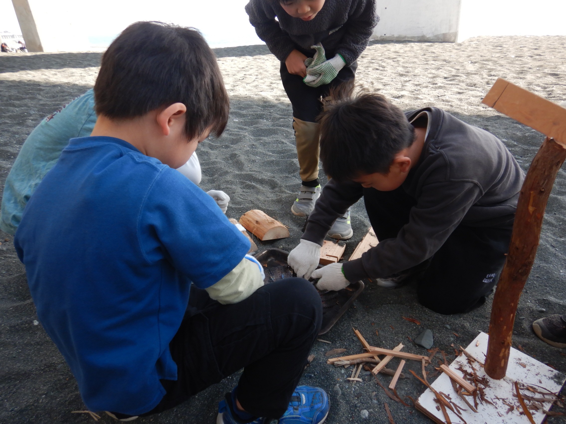 今回の海山キッズでは、国府津の海岸をフィールドに、焚き火をメインとした活動を行いました。