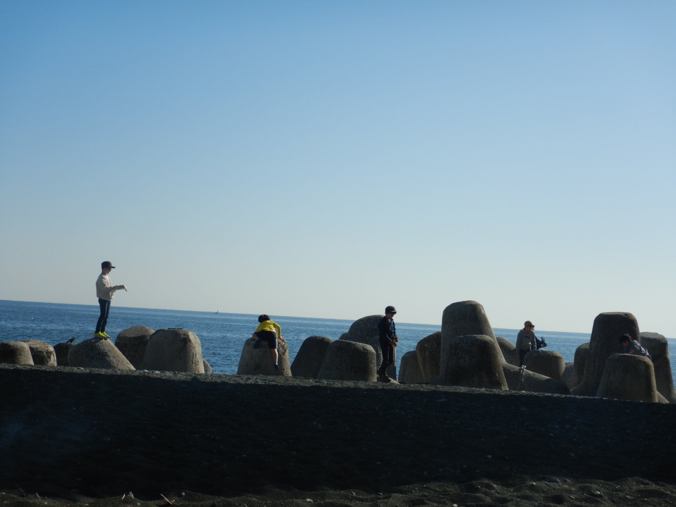 昼食を食べ終え、近くのテトラポットでひと休み。