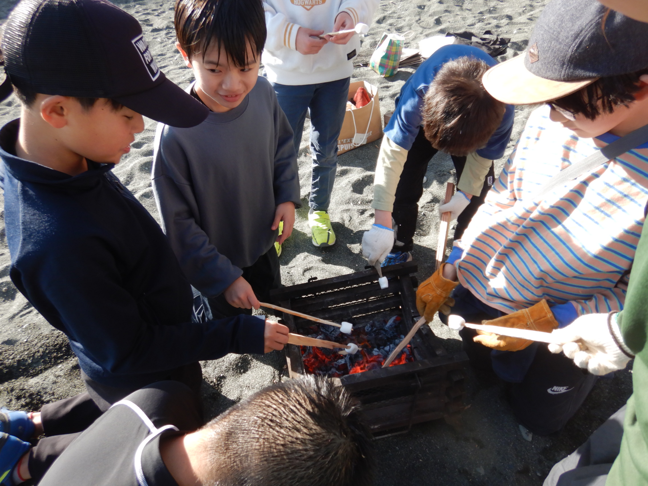 焚き火もいい具合に熾火になり、最後は子どもたちお待ちかねの焼きマシュマロ。