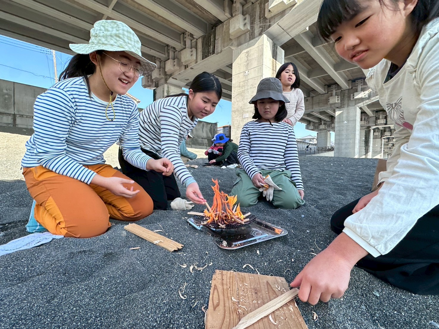 子どもたち自身で自由に火起こしや火遊びができ、海岸という立地から海遊びも楽しめるため、1つのプログラムの中に子ども達が好きな体験が2つも詰まっているからです。