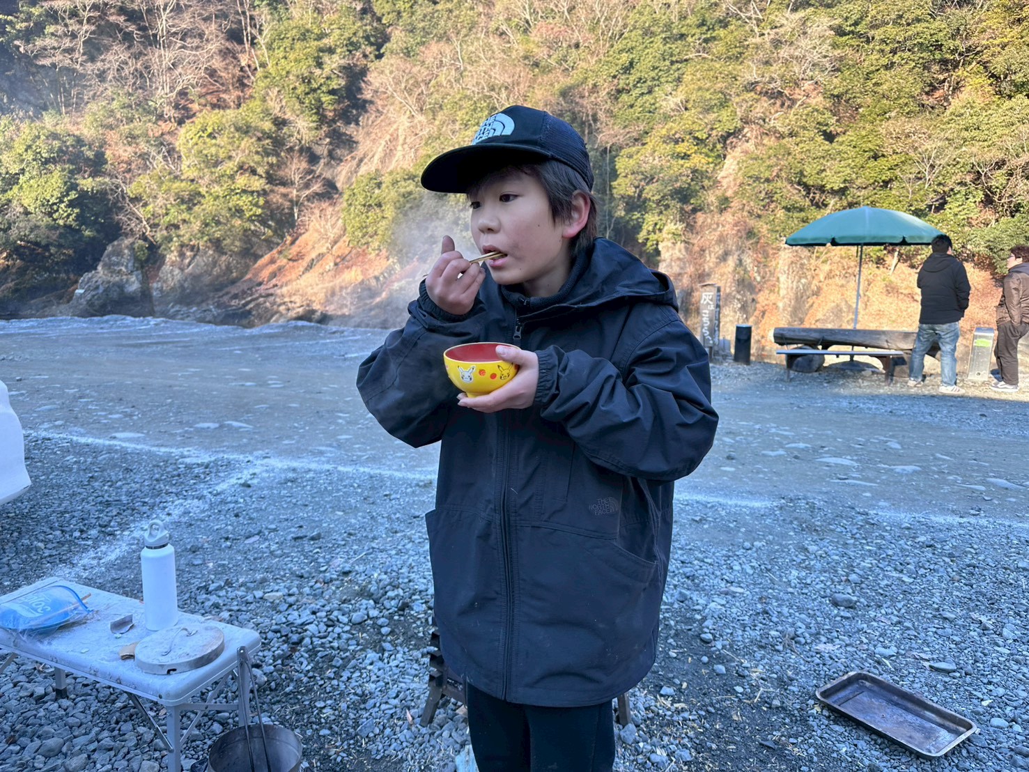 ▽まだ日も上りきっていない時間帯。冷えた体に温かいご飯が染みわたります。