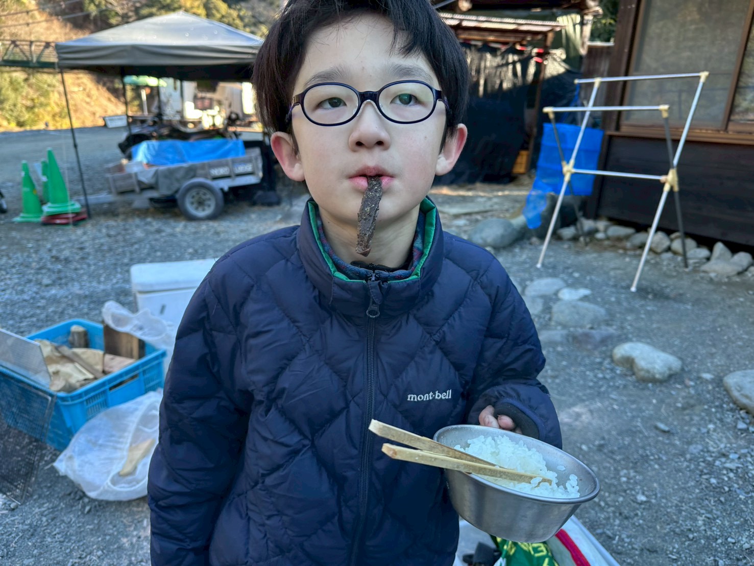 出発までに時間がないことを見越して、朝食は米、シカ肉の燻製(1日目、2日目で干し肉、燻製にしていました)、味噌汁という比較的に簡単なメニューを準備することにします。